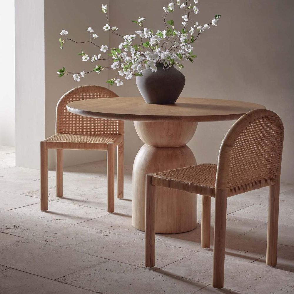 We love the Caden Dining Chair, a perfect fusion of minimal lines combined with the charm of hand woven rattan. Meticulously handcrafted, it features a sturdy teak wood frame that enhances elegance with its curvaceous backrest. The double-thick woven cane rattan seat and backrest ensure the utmost comfort, providing a supportive seating experience. With its warm natural tones derived from the teak wood and rattan, this chair brings a cosy inviting atmosphere to any space. The Caden Dining Chair's versatility allows it to effortlessly blend with various dining table styles, ranging from contemporary minimalist designs to more rustic or farmhouse-inspired dining tables. ADDITIONAL INFORMATION • Timber is sourced from sustainable plantations. • Teak wood is kiln-dried for added durability.
