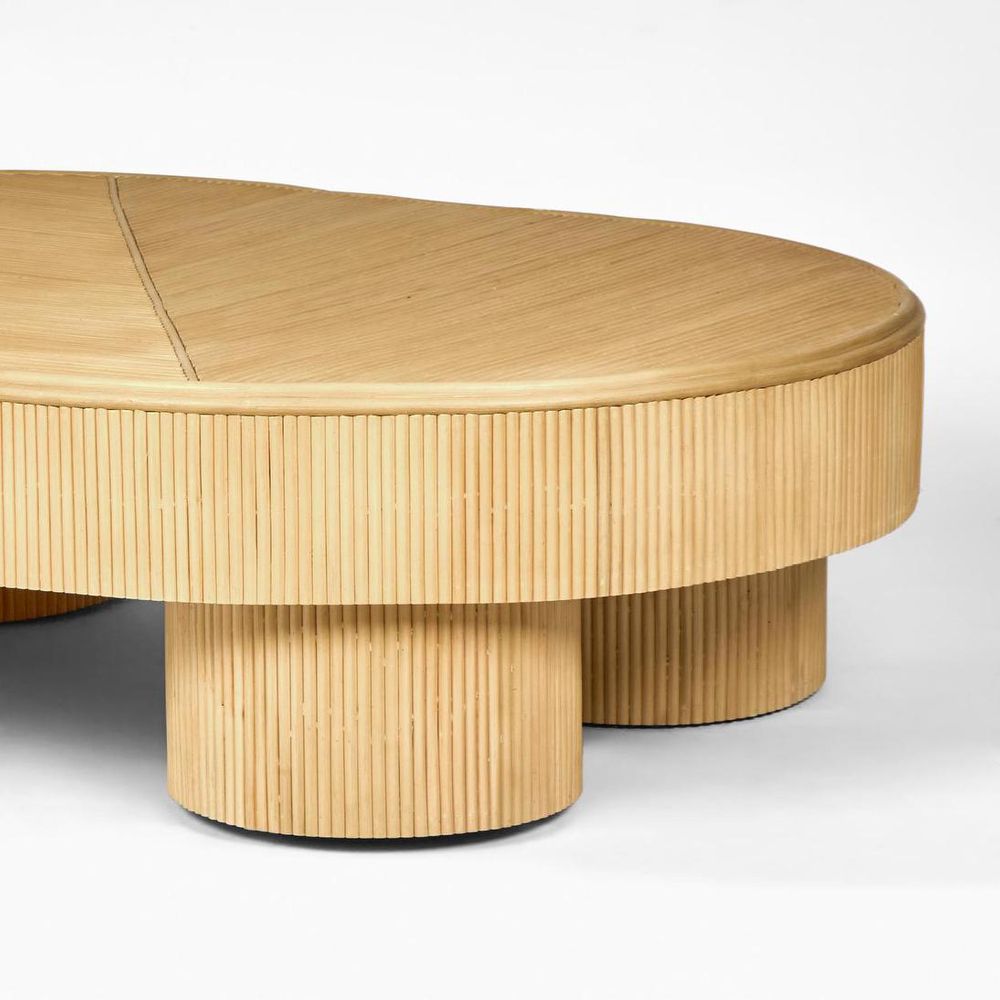 Designed to complement the Letitia Buffet, this oval sided exquisite coffee table combines simple cylinder silhouettes with delicate reed rattan pattern overlays, to create modern geometry. The modern aesthetic of the shapes, contrasts with the natural texture of reed rattan, providing rustic charm and giving a substantial presence in a room. A bamboo inner frame supports the round bases with vertical reed rattan cladding. Handwaxed to a subtle satin finish, the natural and organic beauty of the blond colour of the rattan is enhanced. Mix and match with the sia table range to create a harmonious display. ADDITIONAL INFORMATION •Sungkai is a sustainable plantation timber native to Indonesia used extensively in furniture making due to its inherent strength. •The elegant grain and natural light tone makes it perfect for the contemporary coastal designs in the MRD Home range. • Hand waxed to retain the natural timber colour results in an elegant Matte texture. CARE INSTRUCTIONS • Like all natural timbers Sungkai furniture should be kept out of direct  sunshine for extended periods of time. • Do not expose the surface to liquids or excessive moisture. •Wipe with a damp cloth to clean.
