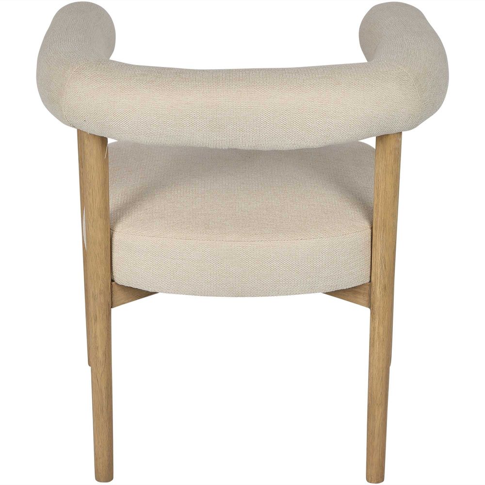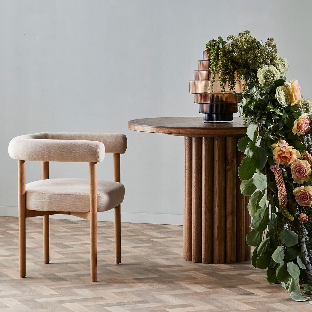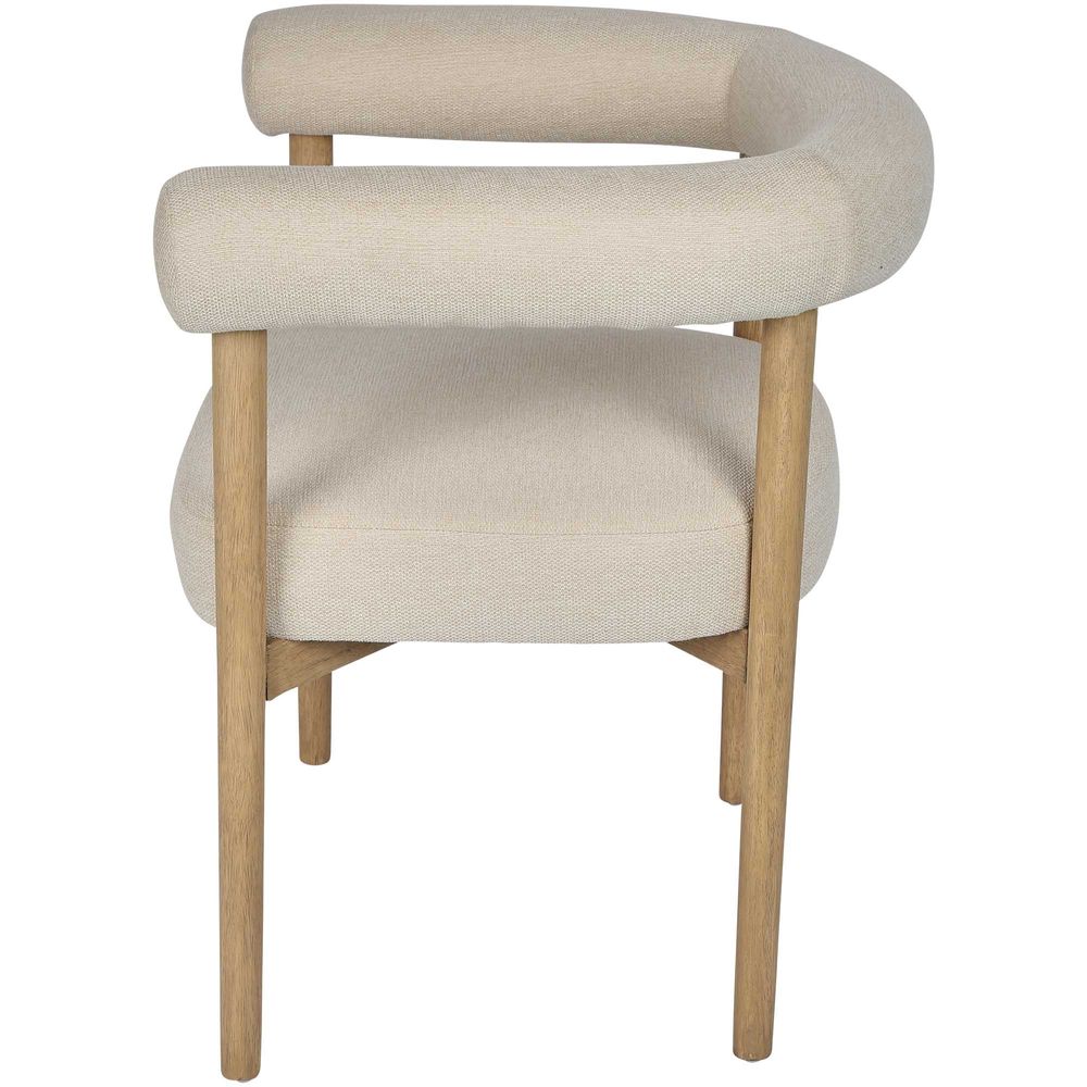 Dine in ultimate style and comfort with our Natural Manningham Dining Chair. This minimalist marvel flawlessly combines comfort with cool design, boasting a soft cushioned seat and a tubular cushion that seamlessly integrates both armrests and backrest. The muted color palette perfectly complements the sophisticated natural wooden legs, infusing your dining room with a touch of warmth and modernity.