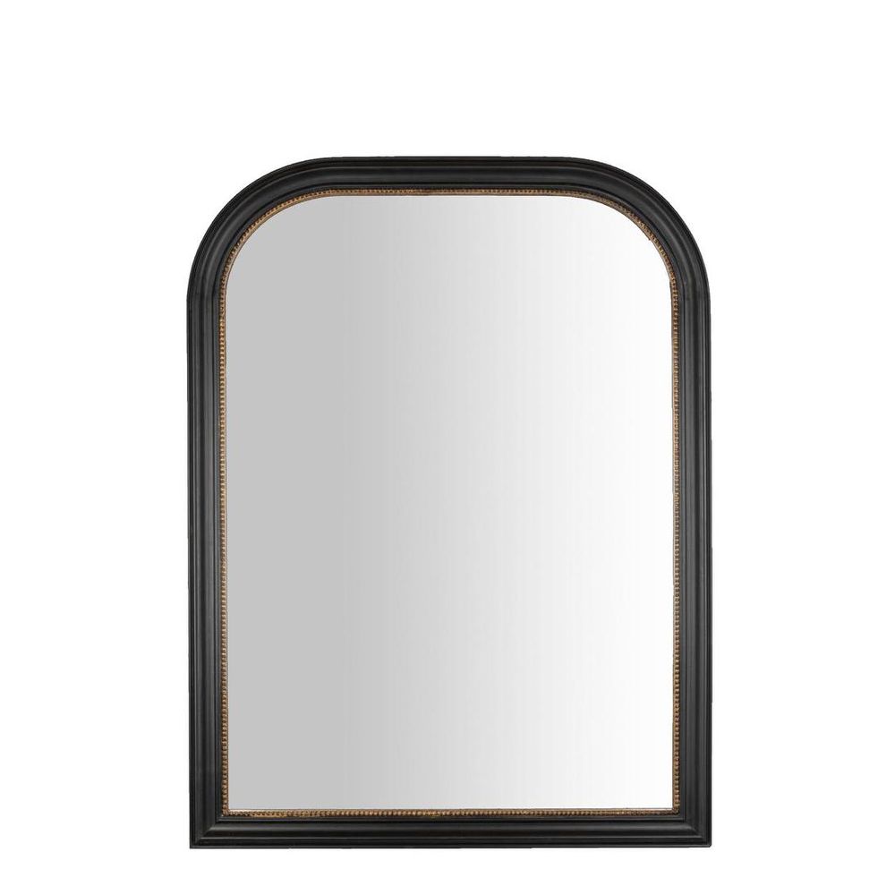 Make every glance a work of art with Napoleon Mirror in Small Black. This arch mirror features striking black frame, tastefully adorned with touches of gold that adds a dash of antique allure. The beveled edges enhance its classical charm. Perfect for making a bold impression in your entryway, above a vanity, or gracing your living room wall, this mirror effortlessly blends sophistication with a hint of rebellion.