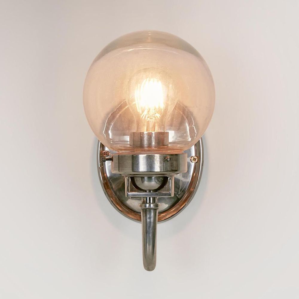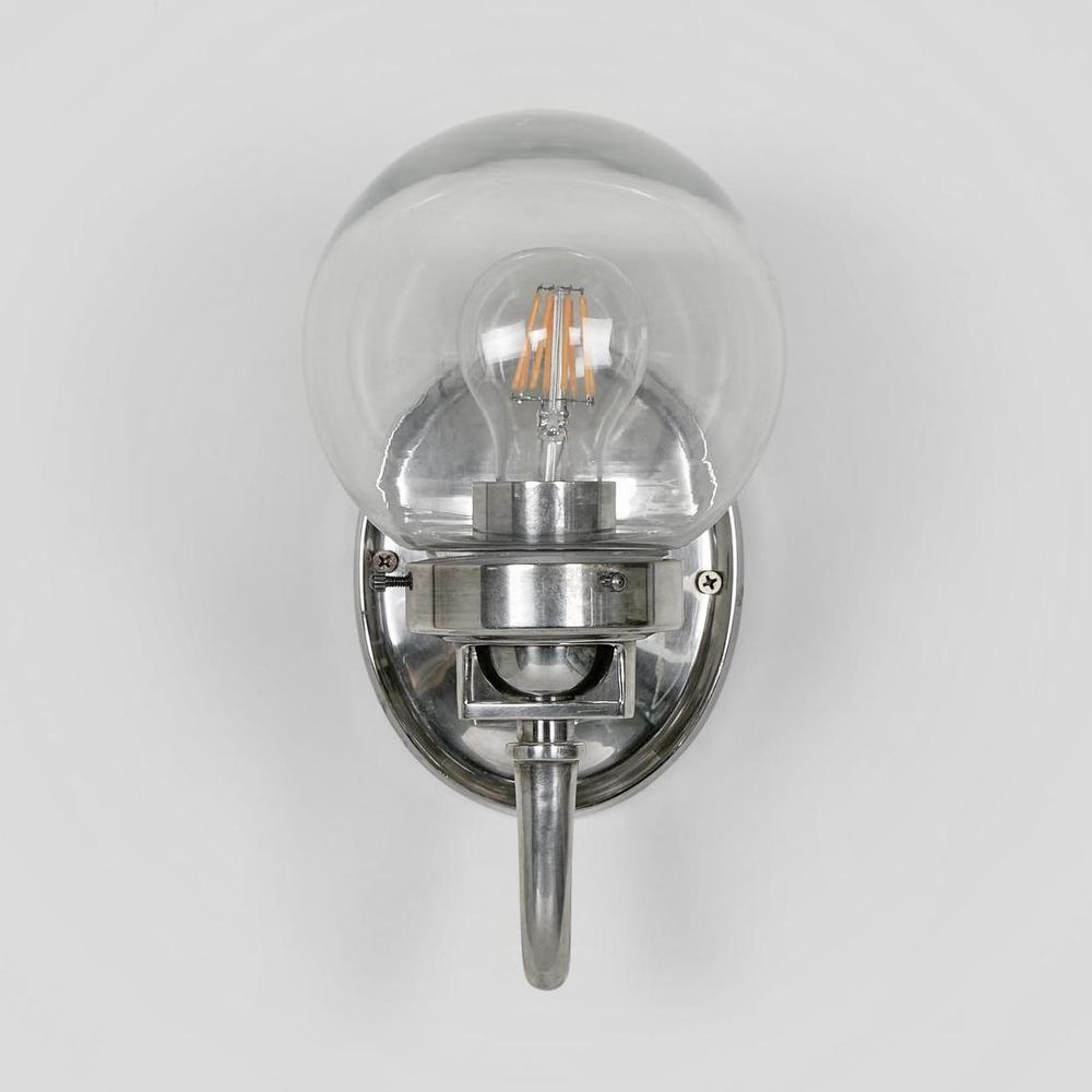Our Tuscany is small clear round glass with Art Deco styling and retro look that sit happily in both traditional and modern interiors. The curved arm fitting and oval backplate are made in solid brass with antique silver finish only, to provide strong background illumination in almost any room. ADDITIONAL FEATURES * Lamp holder takes a standard E14 light bulb at 40 watt max * Standard Australian domestic fitting Please note that most glass components are handmade and therefore small air bubbles, slight defects and colour variations may naturally occur during the glassblowing process. [ download spec sheet ]