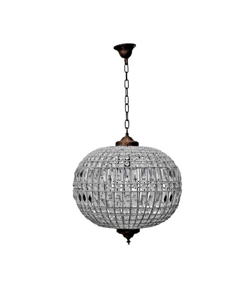 Our famous Palermo is an exquisite crystal glass round chandelier pendant light. It is handcrafted with a brass frame and perfectly carved glass tiles to form this sparkling chandelier. It has a vintage style and an atmosphere reminiscent of the French lights of the Versailles palaces. This elegant chandelier which excludes with warm shards of light will enhance any elegant living space, either dining or living. ADDITIONAL FEATURES • Standard Australian domestic fitting • Ceiling rose has a matching finish with the base • 1.5m chain and cord height is adjustable • Lamp holder takes a standard E27 light bulb at 40 watt max Please note that most glass components are handmade and therefore small air bubbles, slight defects and colour variations may naturally occur during the glassblowing process. [ download spec sheet ]