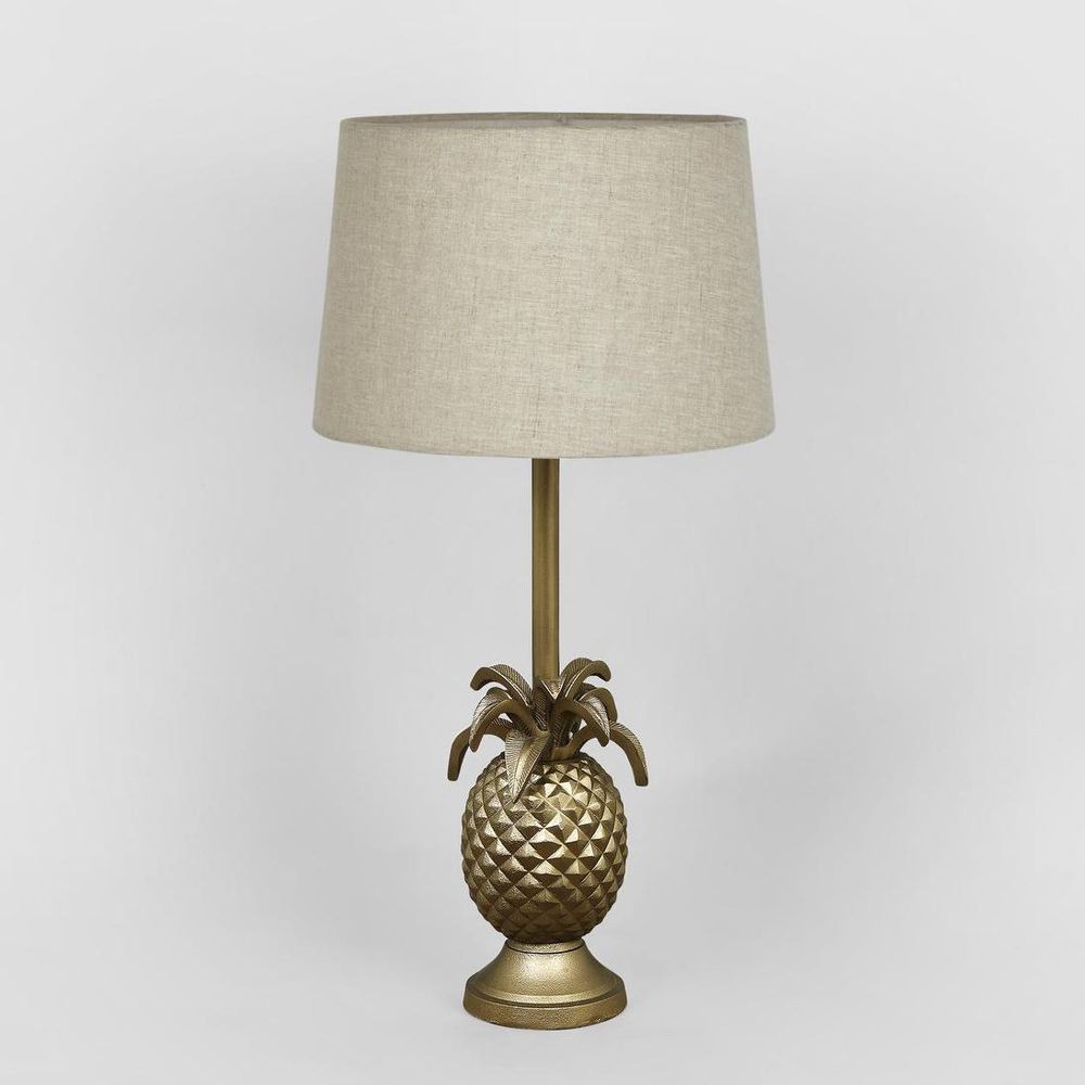 Our Pineapple table lamp has been very popular and become a symbol of hospitality in a sense of welcoming. The spiked leaves add eye-catching appeal to the detailed pineapple base. Two colours are available which are antique silver and brown. Lamp shade that suit for silver base is black or off white linen. For the brown colour, the base will match with natural linen shade. ADDITIONAL FEATURES * The lamp holder takes E27 globe max 40w * Standard Australian domestic fitting * Switch on and off is located on the lamp holder Please note lamp shade is sold separately [ download spec sheet ]