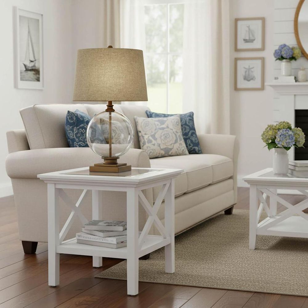 Ivy Small Antique Brass And Glass With Natural Linen Shade