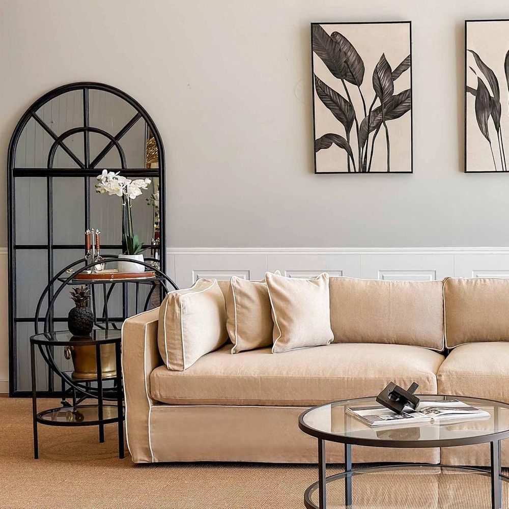 Create a striking visual appeal that instantly enhances any room with our Large Iron Arch Mirror with Panes in Antique Black. Hang it in your entryway to greet guests with style, or adorn your living room to add depth and drama to the space. With its captivating arched design and timeless antique black finish, this mirror effortlessly blends classic sophistication with contemporary flair.