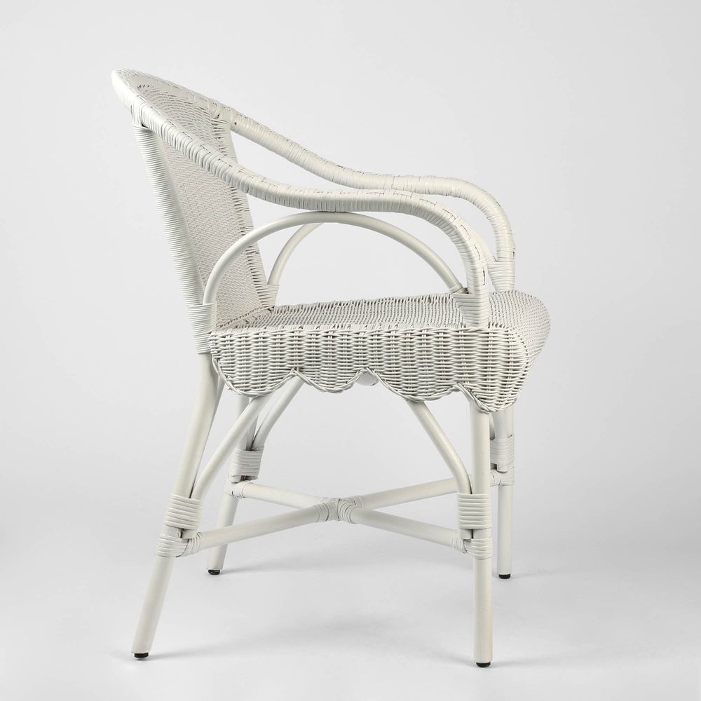 Introducing the Belle Rattan Armchair White, a stunning piece inspired by 1920's French design. Handcrafted by skilled weavers using natural wicker, this armchair features a beautiful scallop-edge detail. Perfect for adding a touch of elegance to any room, this classic armchair is designed for indoor use only.