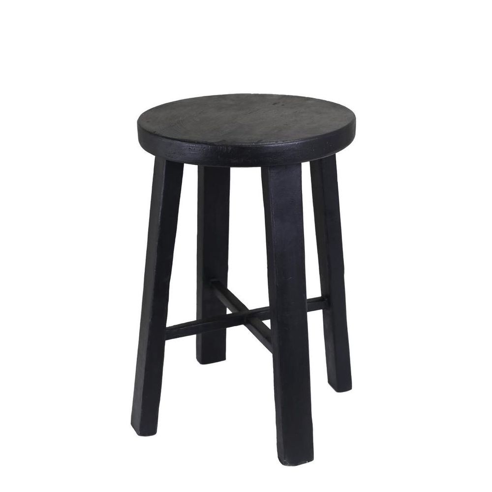Hand made in Indonesia by skilled artisans this round stool is proudly made of recycled Timber. Its organic shape gives ample character and charm, finished with a lush black paint to give a smooth finish.