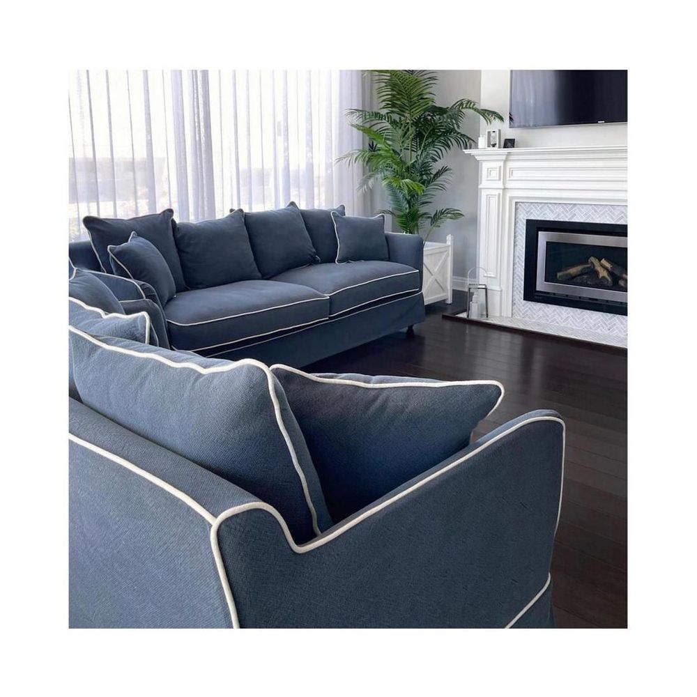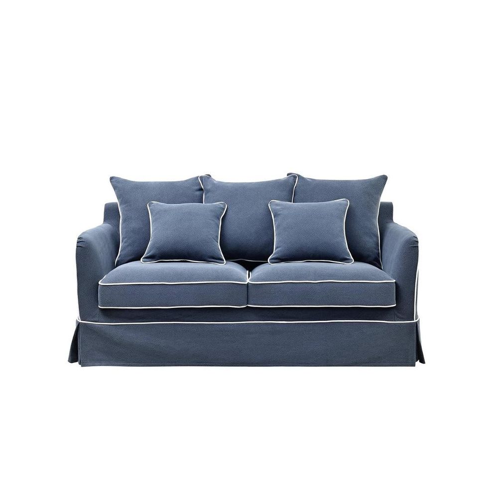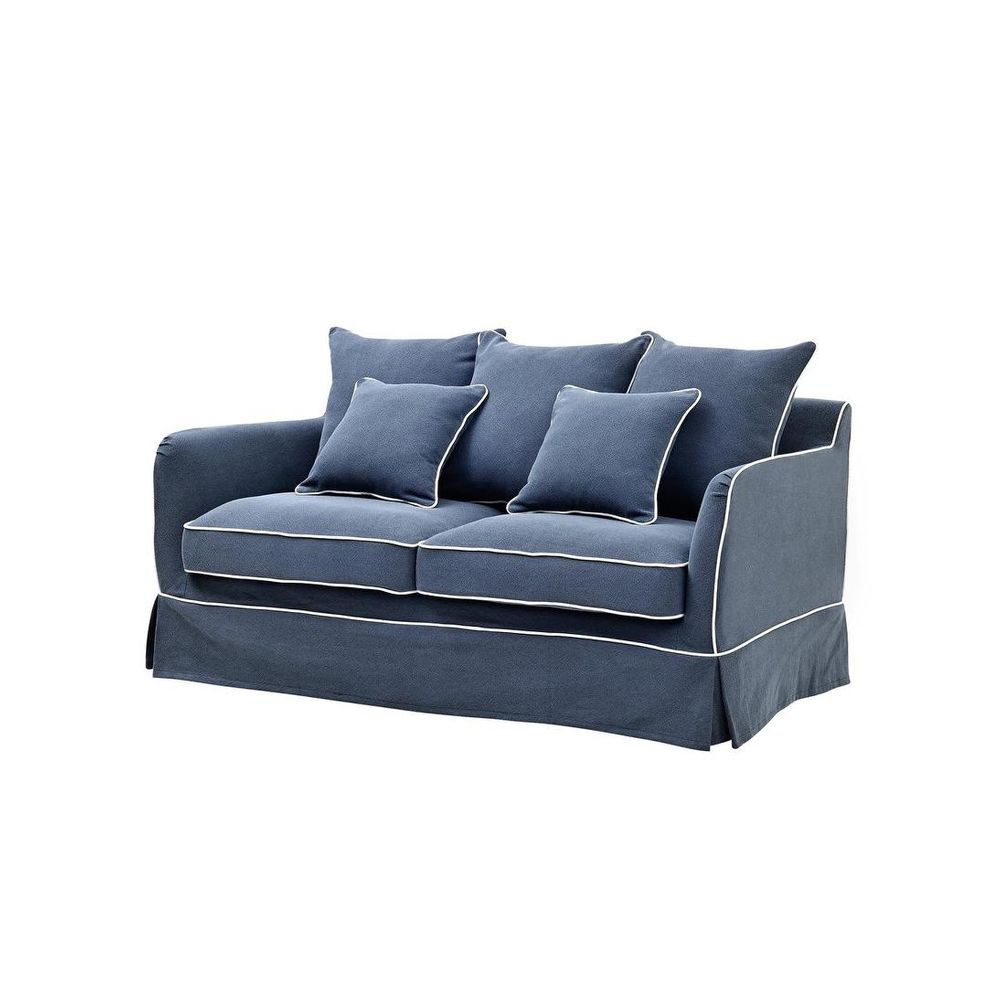 Slip Cover Only - Noosa Hamptons 2 Seat Sofa Navy W/White Piping