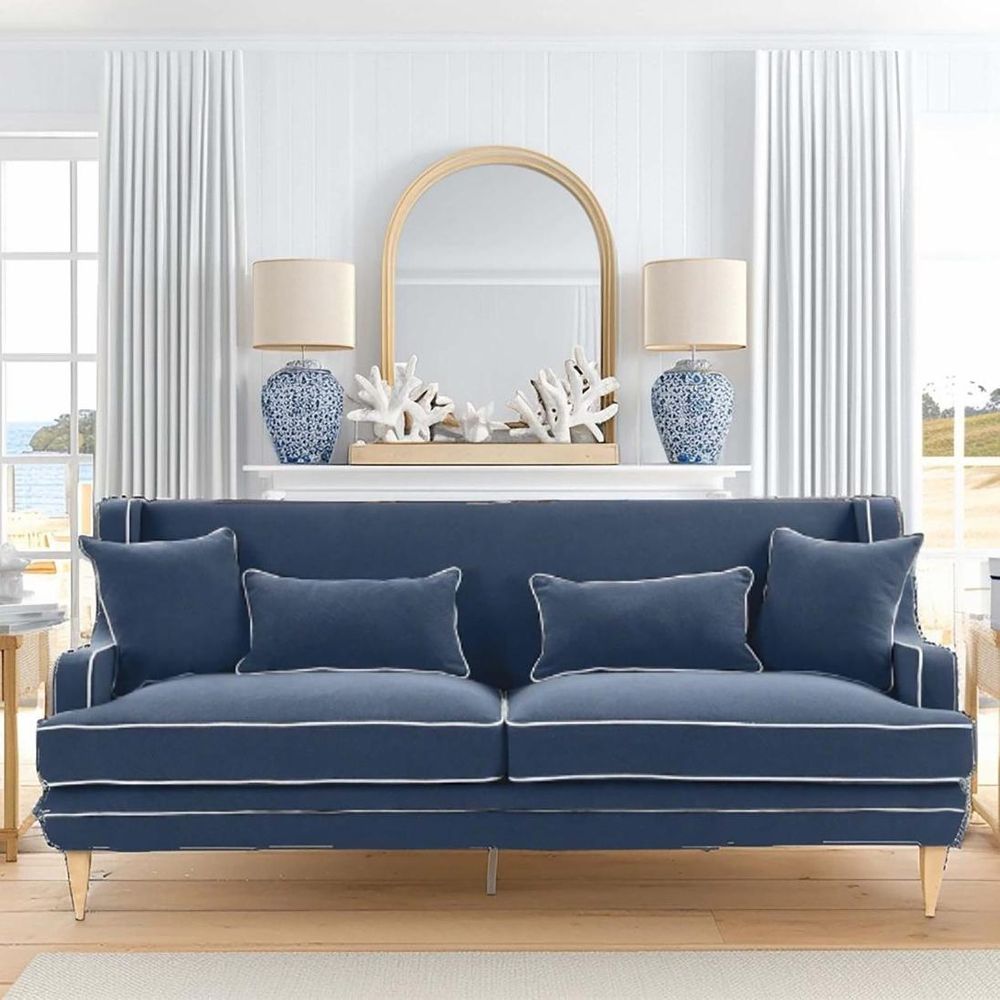 Bondi Hamptons 3 Seat Sofa Navy W/White Piping