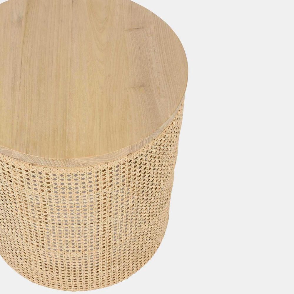 The Zoe side table shows a simple cylinder silhouette with a beautiful hand waxed wood grained 25mm natural solid sungkai wood top. It is a beautiful addition to any modern or contemporaty interior. The bamboo inner frame is clad with a woven cane rattan panel adding texture and visual interest to your living areas. Beautiful on its own or paired with similar to style with a vase or lamp.