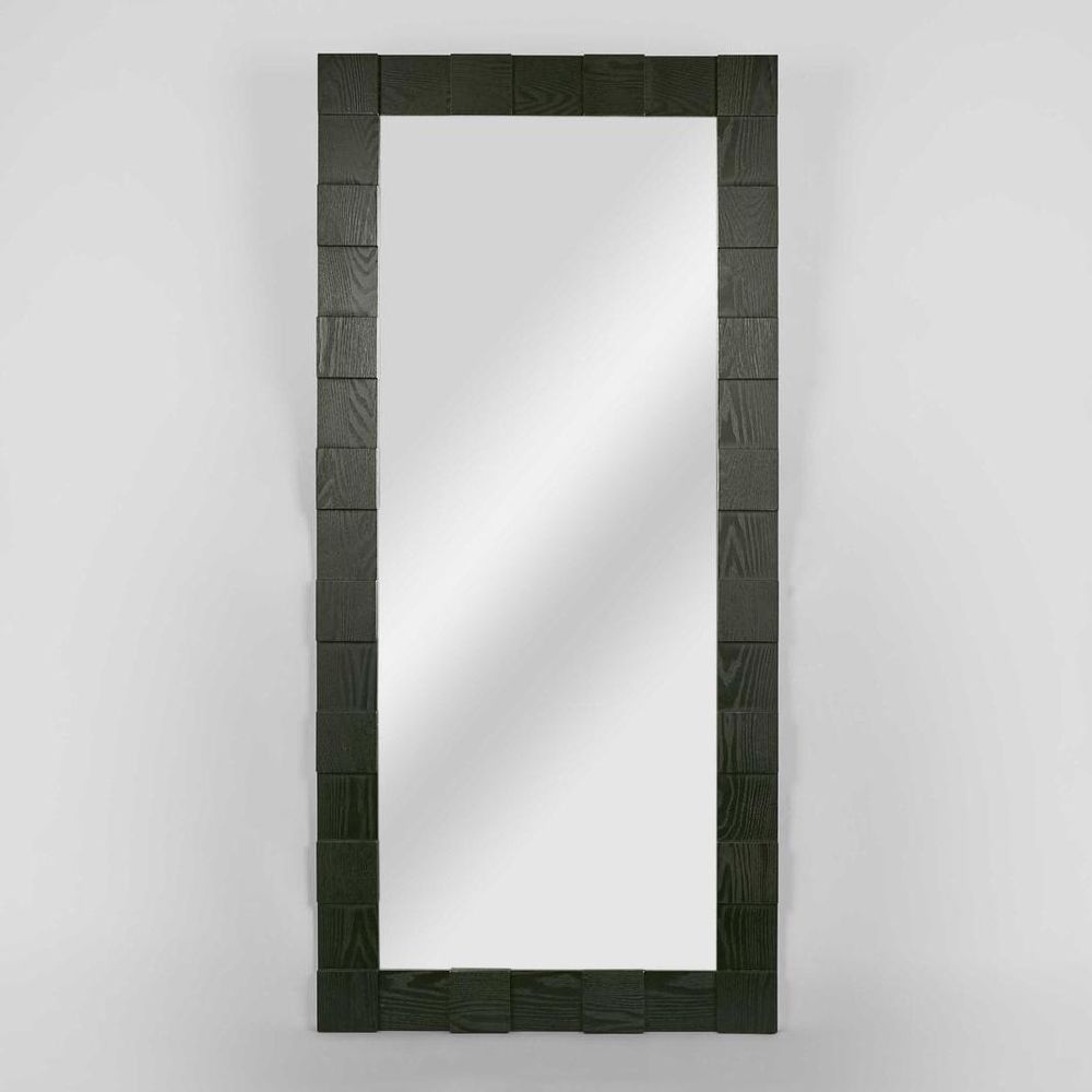 See yourself in a new light with our Monument Floor Mirror in Black, a towering testament to modern Montauk elegance crafted with an oak profile and meticulously hand-laid details. Whether placed in your bedroom, dressing area, or living space, its tall and wide stature ensures you capture every angle of your style and sophistication. With no assembly required and maintenance as easy as a quick dust with a soft cloth, elevating your decor has never been so effortless.