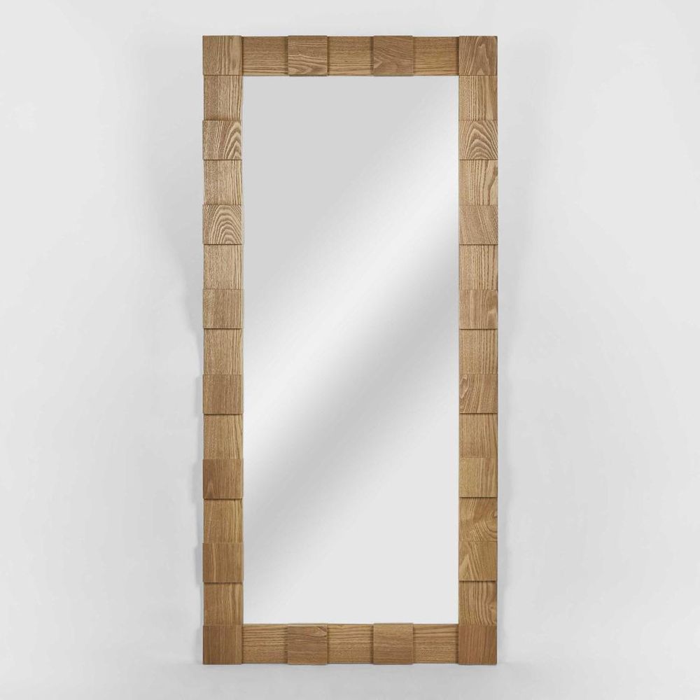 See yourself in a new light with our Monument Floor Mirror in Oak, a towering testament to modern Montauk elegance crafted with an oak profile and meticulously hand-laid details. Whether placed in your bedroom, dressing area, or living space, its tall and wide stature ensures you capture every angle of your style and sophistication. With no assembly required and maintenance as easy as a quick dust with a soft cloth, elevating your decor has never been so effortless.