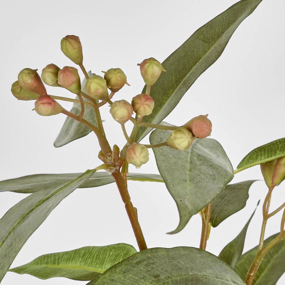 Add some 'leafy chic' to your home with our artificial Eucalyptus Seed Stem. Crafted with lifelike precision, each slender stem boasts delicate eucalyptus seed pods and lanceolate leaves, bringing a touch of botanical charm to any space. Whether adorning a vase on your dining table, gracing a mantlepiece, or enhancing a floral arrangement, this hypoallergenic stem adds a breath of fresh air without the fuss of watering or maintenance. No assembly required, simply dust with a static feather to keep it looking vibrant and realistic, offering a cost-effective solution for lasting botanical beauty.