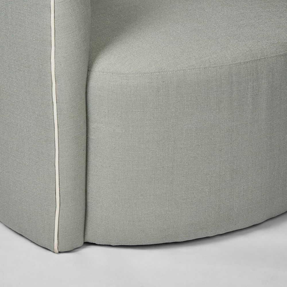 Introduce a touch of coastal charm into your home with the Camille Scallop Armchair in Seafoam with White Piping. This timeless piece features a scallop back design reminiscent of ocean waves, adding a sense of tranquility to any space. The contrast piping adds a touch of sophistication, making it a versatile addition to any room. Best of all, the Camille requires no assembly, so you can start enjoying its comfort and style right away.