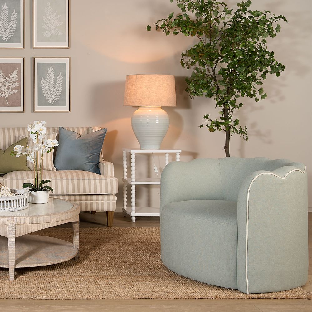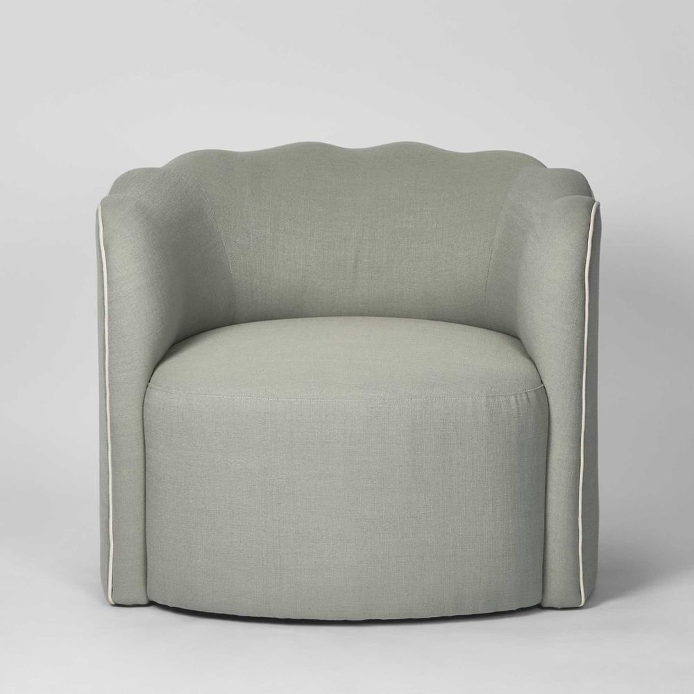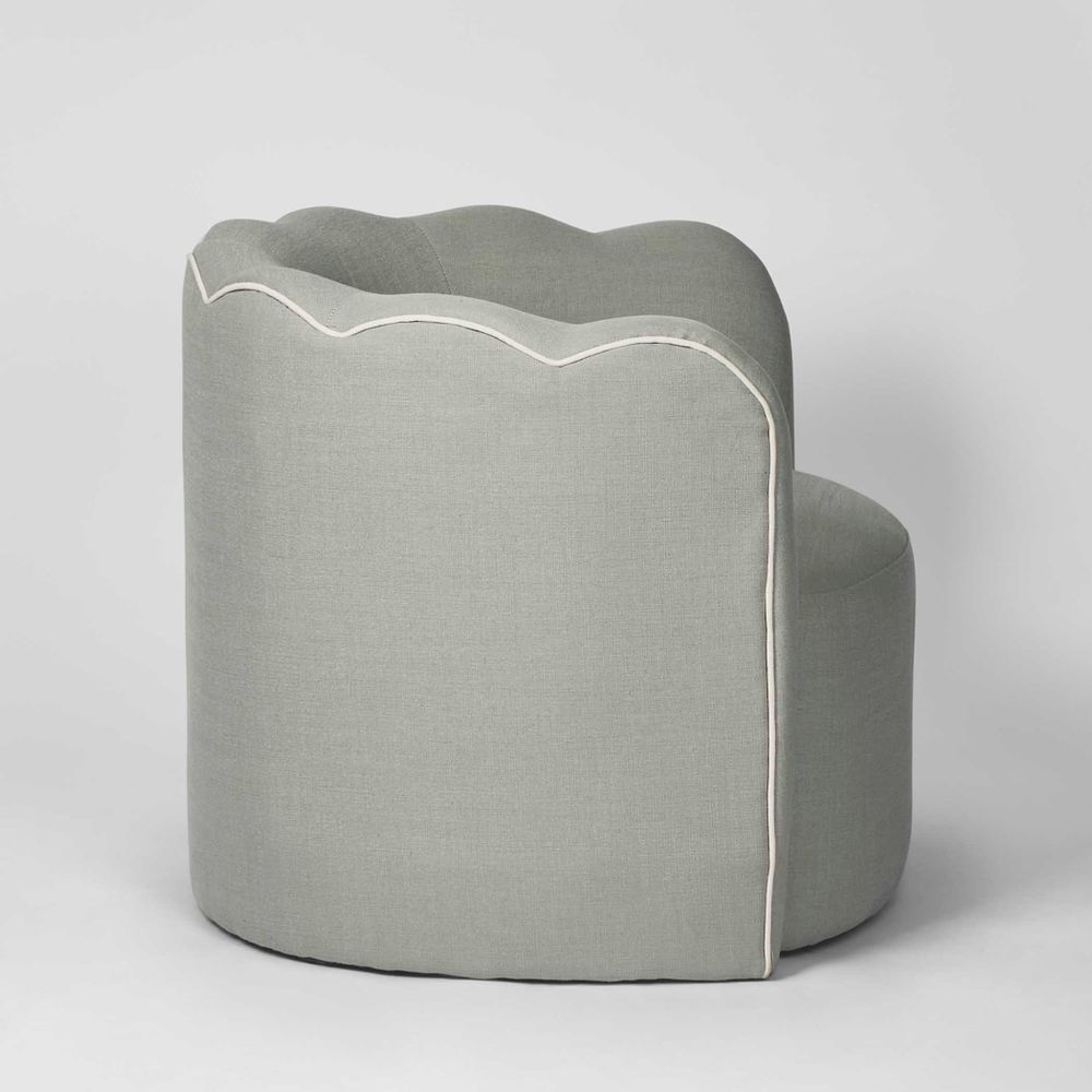 Camille Scallop Armchair Seafoam with White Piping
