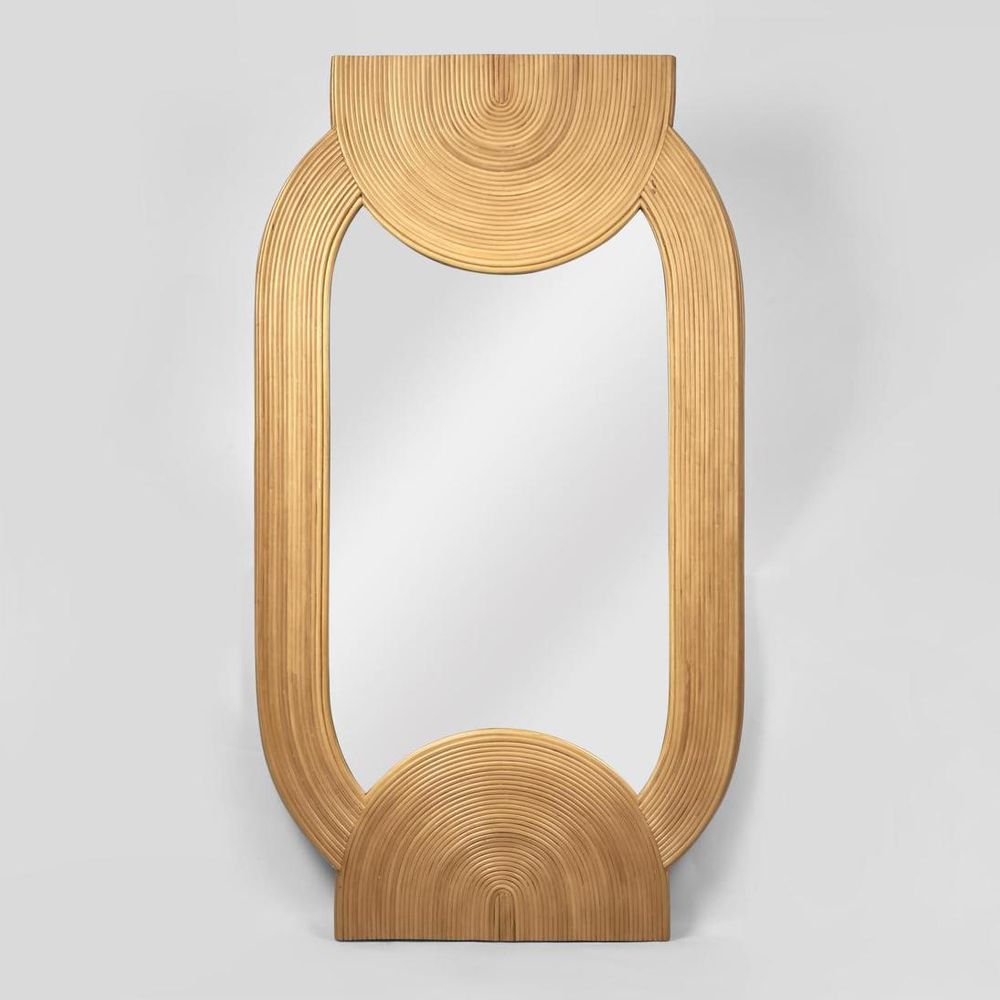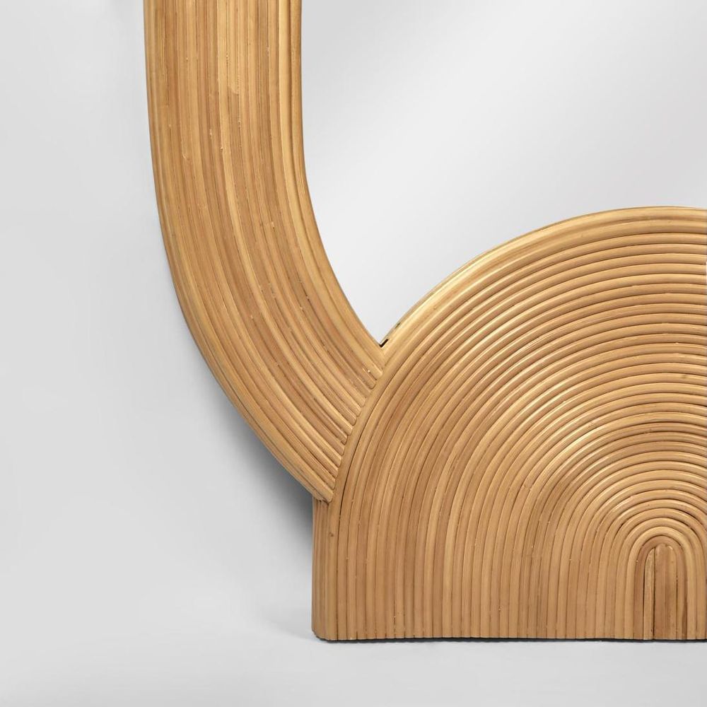 Everything looks better in this mirror! The delightful Lola, will brighten any space, whether domestic or commercial. The rhythmic rattan pattern, grand scale and bold geometric curves combine for a show-stopping piece.