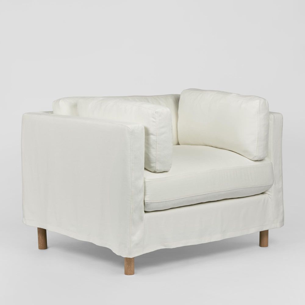The Pamona Chair Base from House of Isabella is the perfect addition to any modern home. With its loose covers, this chair exudes effortless chicness without being too serious. The covers are designed to show off the sleek lines of the chair, rather than giving off a shabby chic vibe. The dimensions of the chair are L 105cm x W 87cm x H 74cm, making it a comfortable and stylish seating option. The chair comes in a crisp white color, adding a touch of elegance to any room. Made with rubber wood and high density foam, the Pamona Chair Base is both durable and comfortable. Shop now at Luxury Interiors Australia for all your home decor and modern furniture needs.