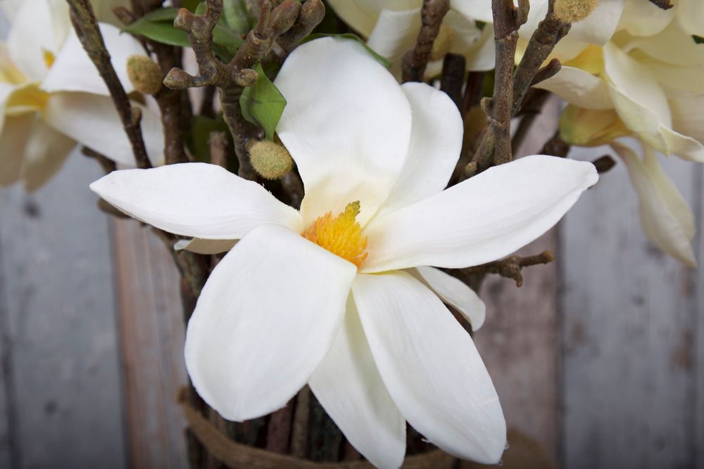 Indulge in the timeless charm of our Artificial Magnolia Flower, available in a pristine white color. Using cutting-edge hyperrealistic technology, this flower is meticulously crafted to achieve a stunningly realistic appearance. Its large, showy bloom boasts delicate cup or saucer-shaped petals, evoking a sense of timeless beauty.