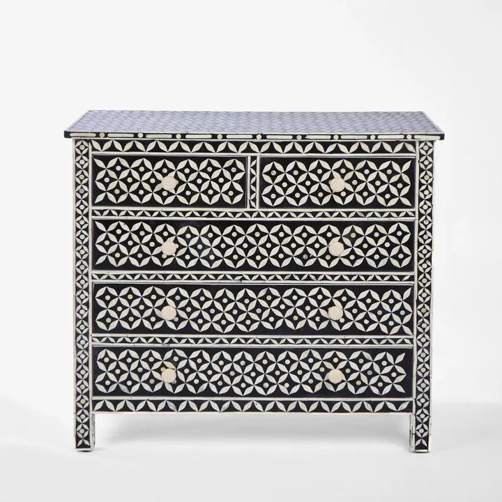 Stella Bone Inlay Chest of 5 Drawers Black/White