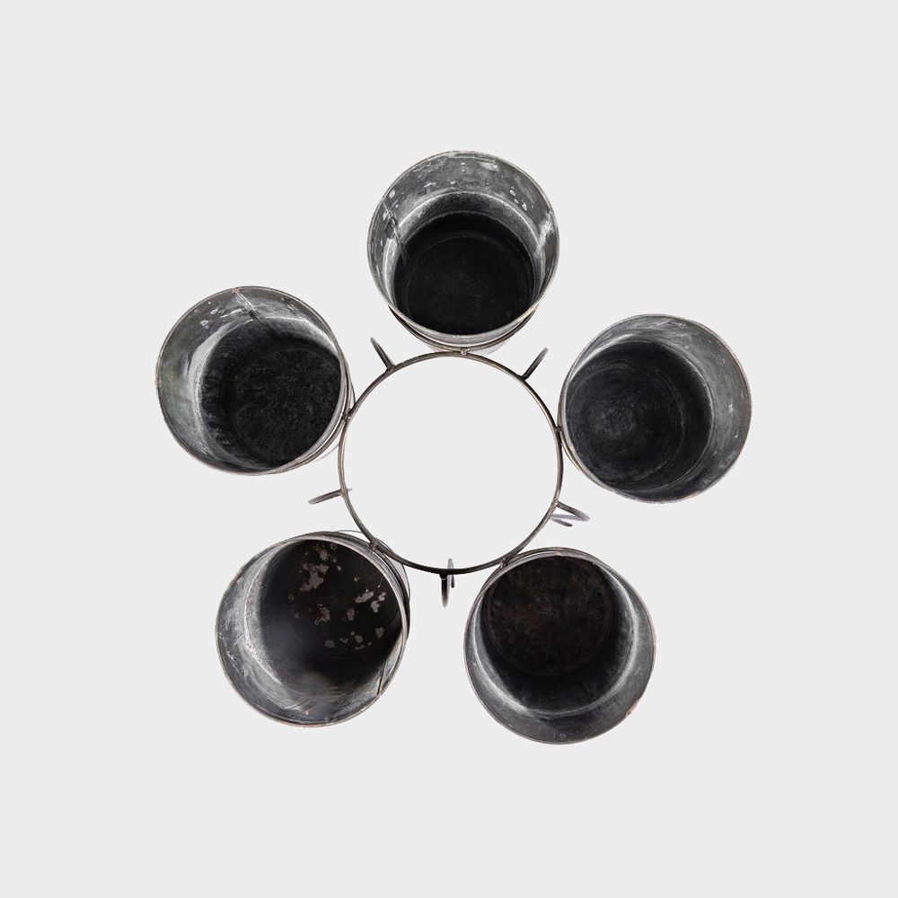 A charming vintage-style centrepiece crafted in galvanized tin with a rustic finish. The French Tin Centrepiece features tiers of small planter vessels that allow floral arrangements, succulents, or cut herbs to cascade gracefully. In both small and large sizes, it offers flexible styling - use it as a focal point on dining tables or console surfaces, or display it outdoors for a whimsical garden touch.