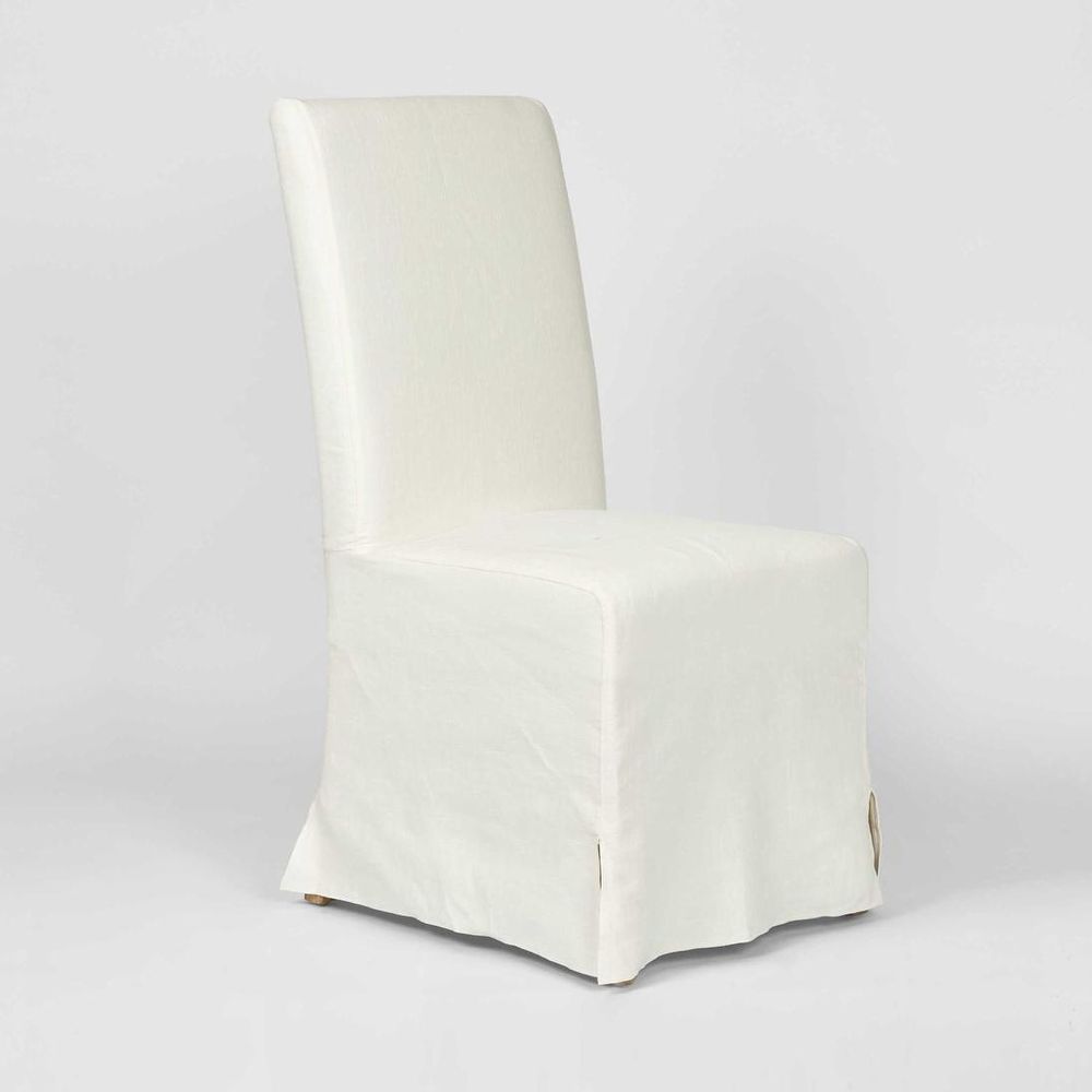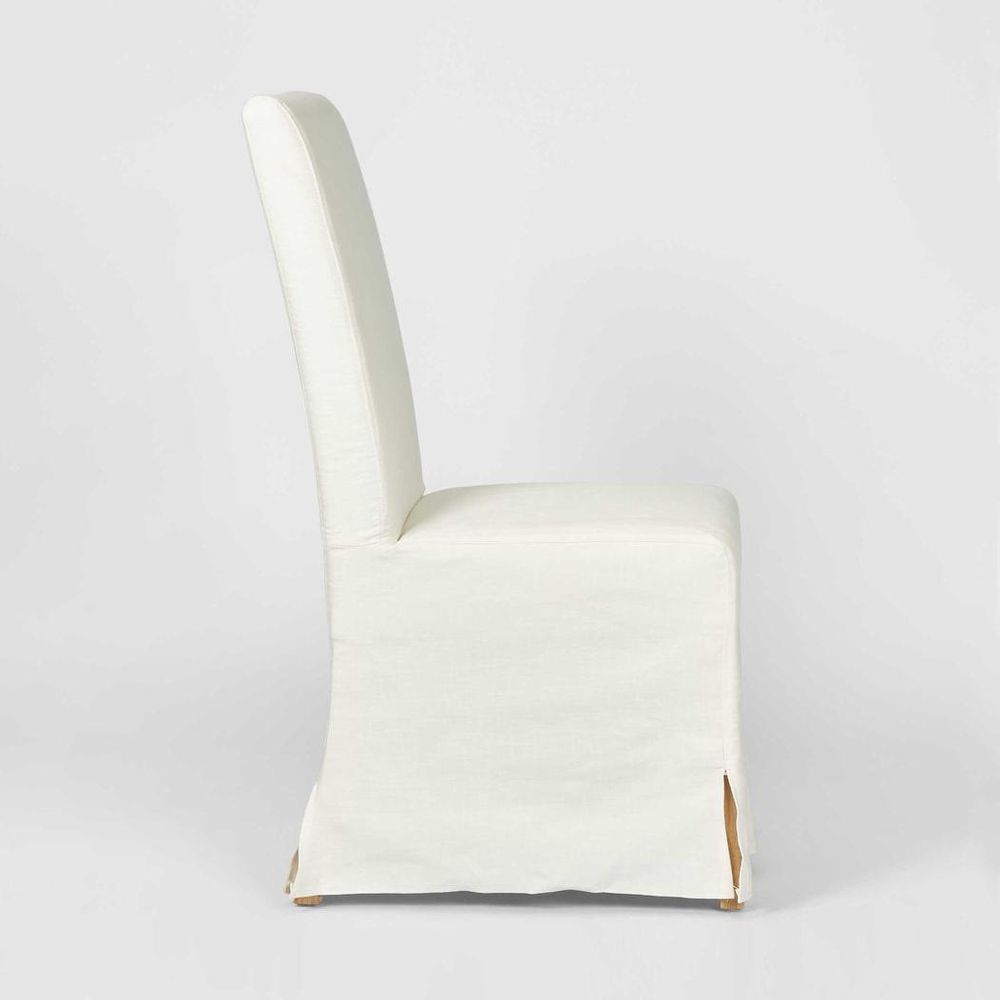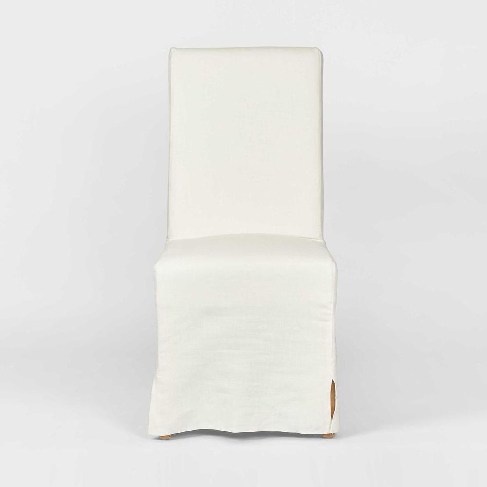 Dress up your Ville Dining Chair with a touch of Hamptons charm using this Ville Slip Cover. Whether you're hosting a formal dinner party or enjoying a casual family meal, this fitted cover adds a touch of refined charm while ensuring your dining chairs stay looking pristine. Crafted from a luxurious linen blend fabric, it exudes understated luxury and easily slips on, allowing you to sit back and indulge in the comfort and beauty of your revamped dining experience. Refer to care instructions for proper cleaning.