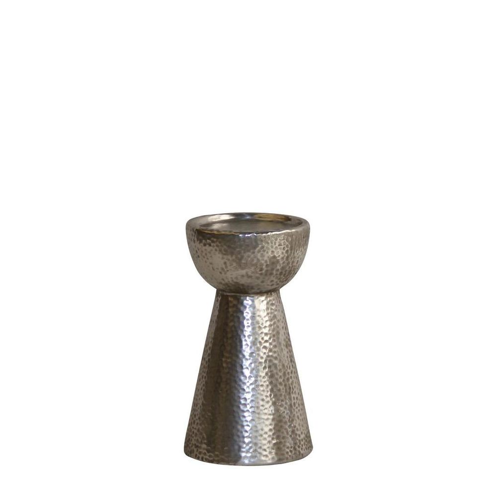 A lovely rustic silver candle holder with an artfully dimpled surface. Use this with a suitable candle and place it on a shelf or table and add some artful illumination to your home.