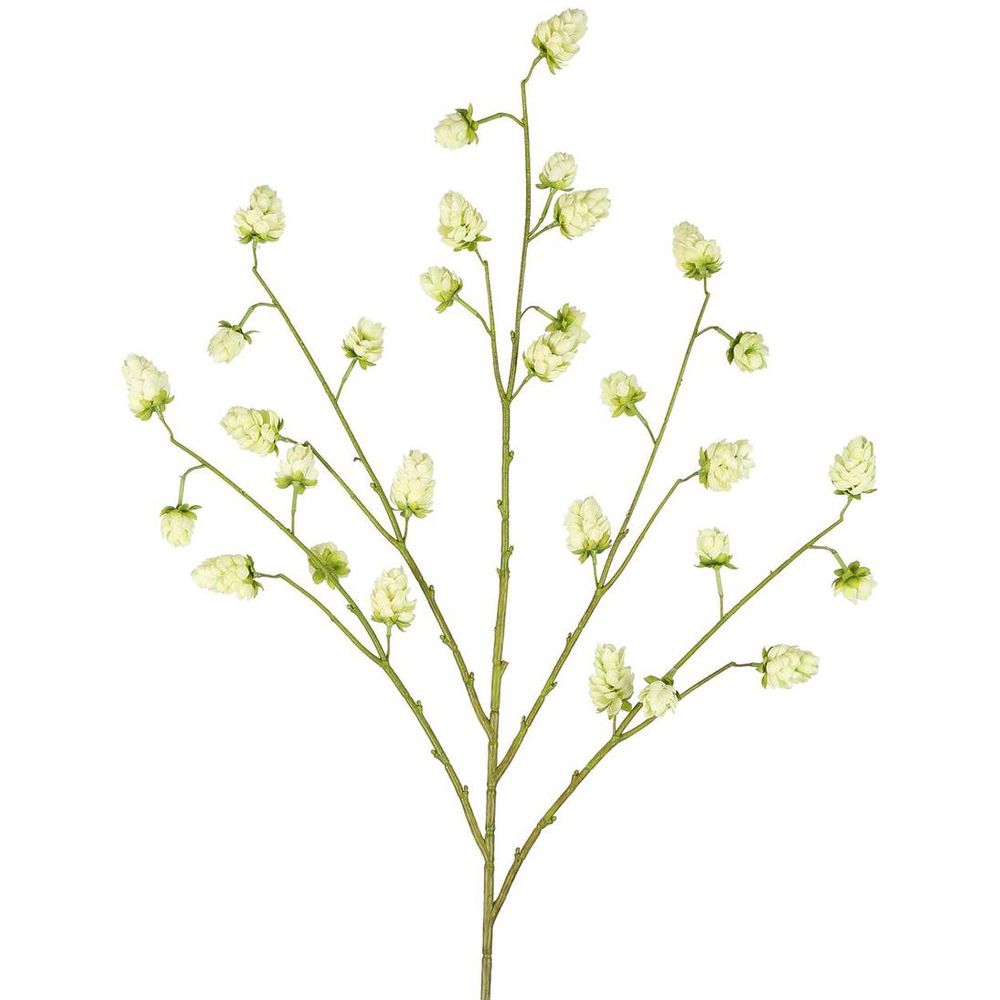 Inject some hoppy charm into your décor with our Hop Flower Spray. Each stem showcases hop cones, mimicking delicate papery white flowers atop lush green branching stems. Thanks to advanced technology, these sprays are incredibly realistic, ensuring lasting beauty without any wilting or scent. Plus, they're hypoallergenic, low maintenance, and cost-effective. With no assembly required, simply dust with a static feather duster to keep them looking fresh and vibrant. Bring the rustic allure of the countryside into your home or office effortlessly with these enchanting hop flower sprays.