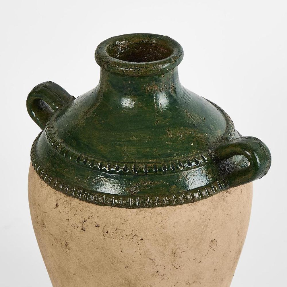 Lovely terracotta urn with green detail! Like its shape, weight and love its colour design, a bit of dark green but not too much. It looks great on my shelving unit, adding a nice touch to the place.