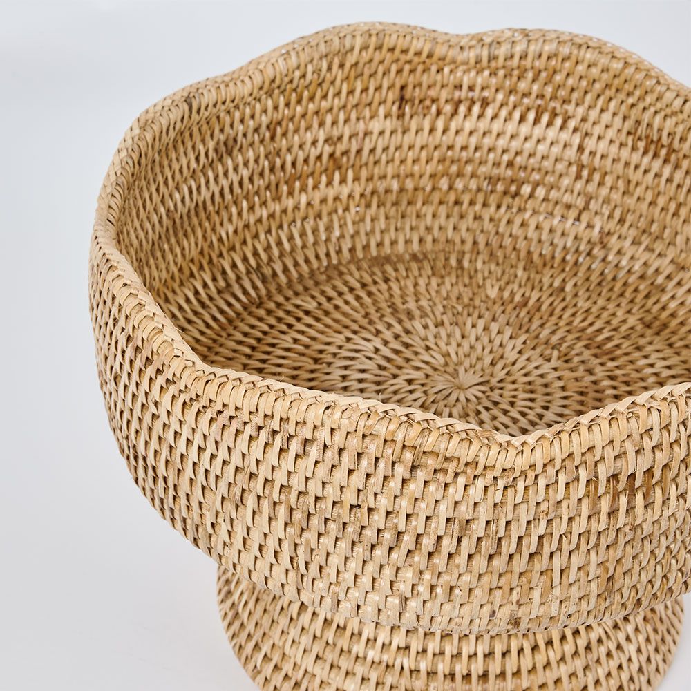 Paume Scallop Rattan Fruit Bowl on Stand Natural
