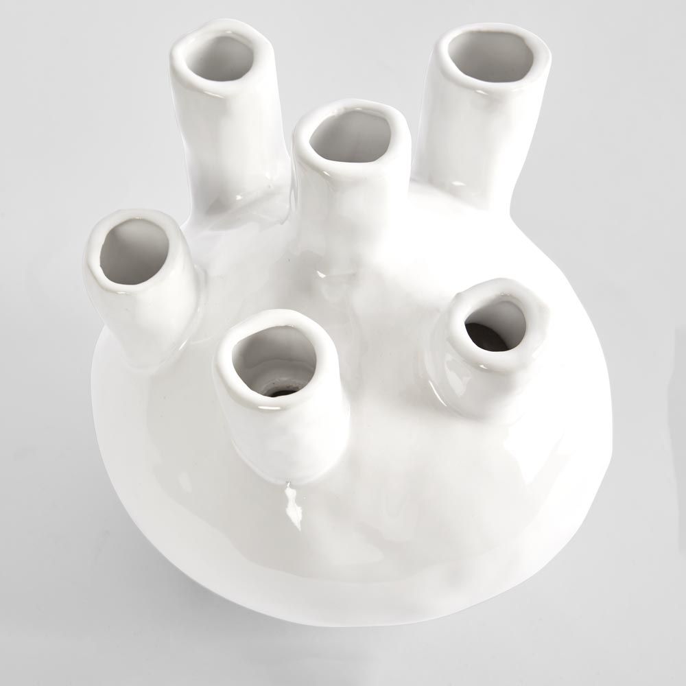 Display your florals in the most interesting vase around! The Tubular vase works in any setting, with a contemporary white glaze to accent all florals. We recommend washing with mild soap and warm water. Avoid using harsh abrasives that could scratch the finish. Avoid extreme temperature changes which could lead to cracking. watertight/waterproof