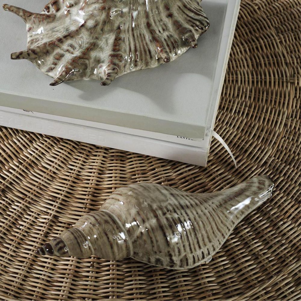 The glossy finish of the Conch Shell gives a natural coastal feel to this cute décor item. We recommend washing with mild soap and warm water. Avoid using harsh abrasives that could scratch the finish. Avoid extreme temperature changes which could lead to cracking.