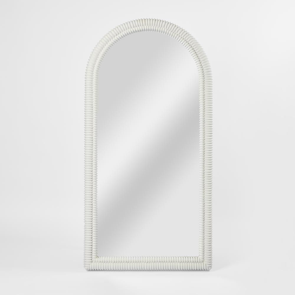 The Fossil Arch Mirror is a modern and stylish mirror designed for home decor. Features a clean white frame with a minimalist design, emphasizing simplicity and elegance. The top of the mirror has an arch-like curvature, giving it a soft, inviting aesthetic. This mirror can fit into various interior design styles, from contemporary to more classic looks, adding a touch of sophistication to any room.