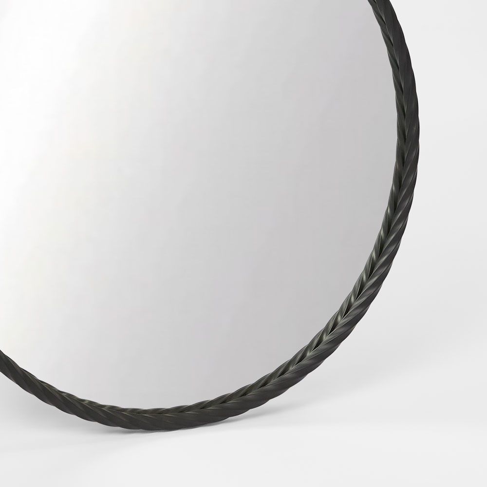 The Palais Round Mirror Small Black is a striking decorative piece often used to enhance interiors. This type of mirror combines a luxurious design with functional elegance, featuring: Shape: A perfectly round mirror for balance and symmetry. Frame: A black rope twist design, adding a bold and textured aesthetic. Size: Small, making it suitable as a statement piece for spaces like living rooms, hallways, or bedrooms.
