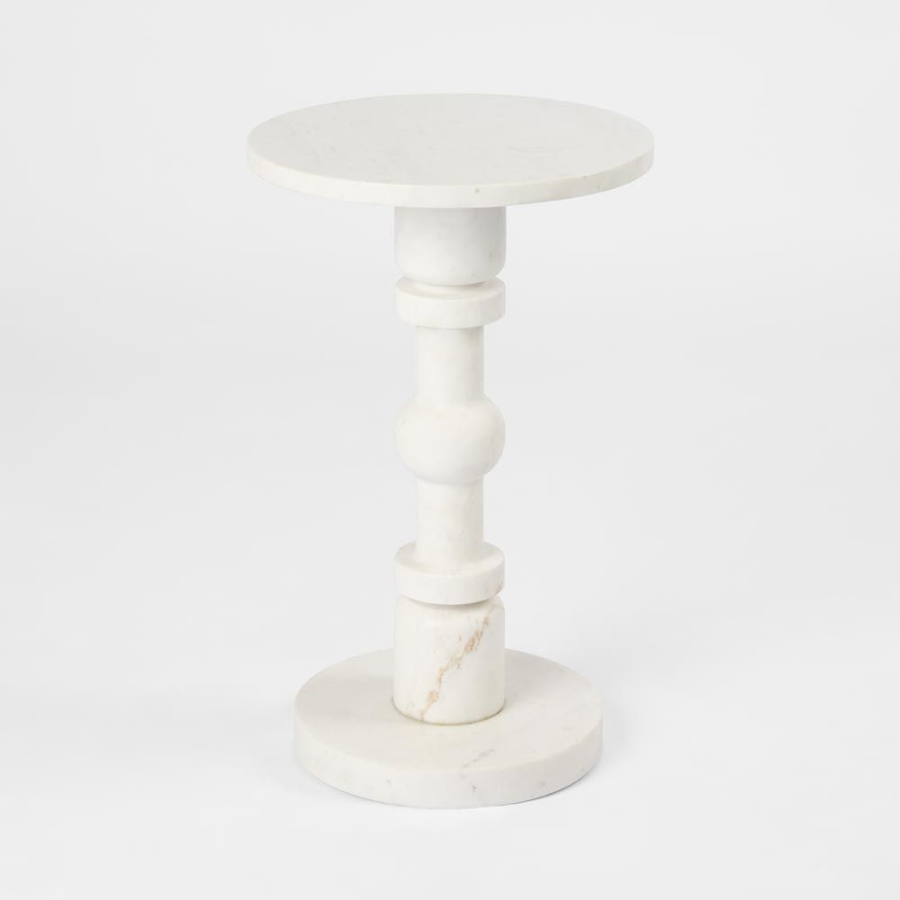 The Athens Occasional Table is a luxurious and functional piece, evoking classical architecture and timeless elegance. The table features a turned marble column as its central support, crafted from premium marble. The intricate turning mimics the fluted patterns of ancient Greek columns, blending classical design with modern sophistication. Its smooth, polished surface highlights the natural veining of the marble, making each piece unique.
