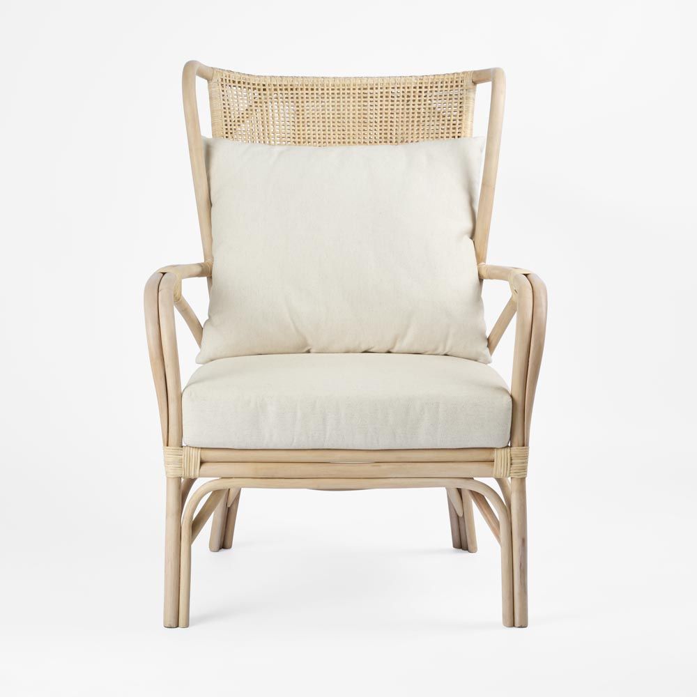 Transform your space and your comfort with the Duke wingback chair. Featuring a highback cushioned backrest & seat for the ultimate in relaxation. The hand moulded armrests are perfectly contoured for maximum relaxation. The hand-woven rattan detailing in the beautiful Natural whitewash finish ensures the Duke is destined to become a coastal classic and feature in any room.