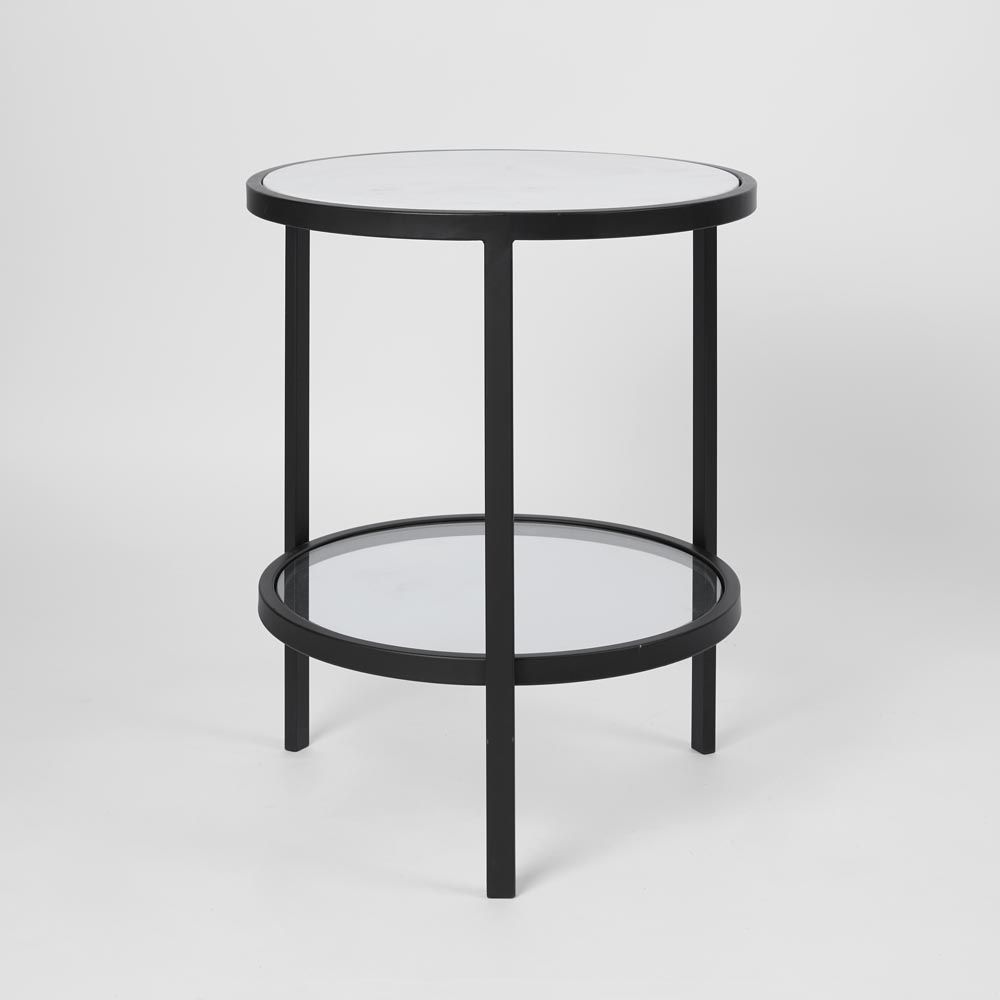 Palladium Black Iron Marble & Glass Side Table