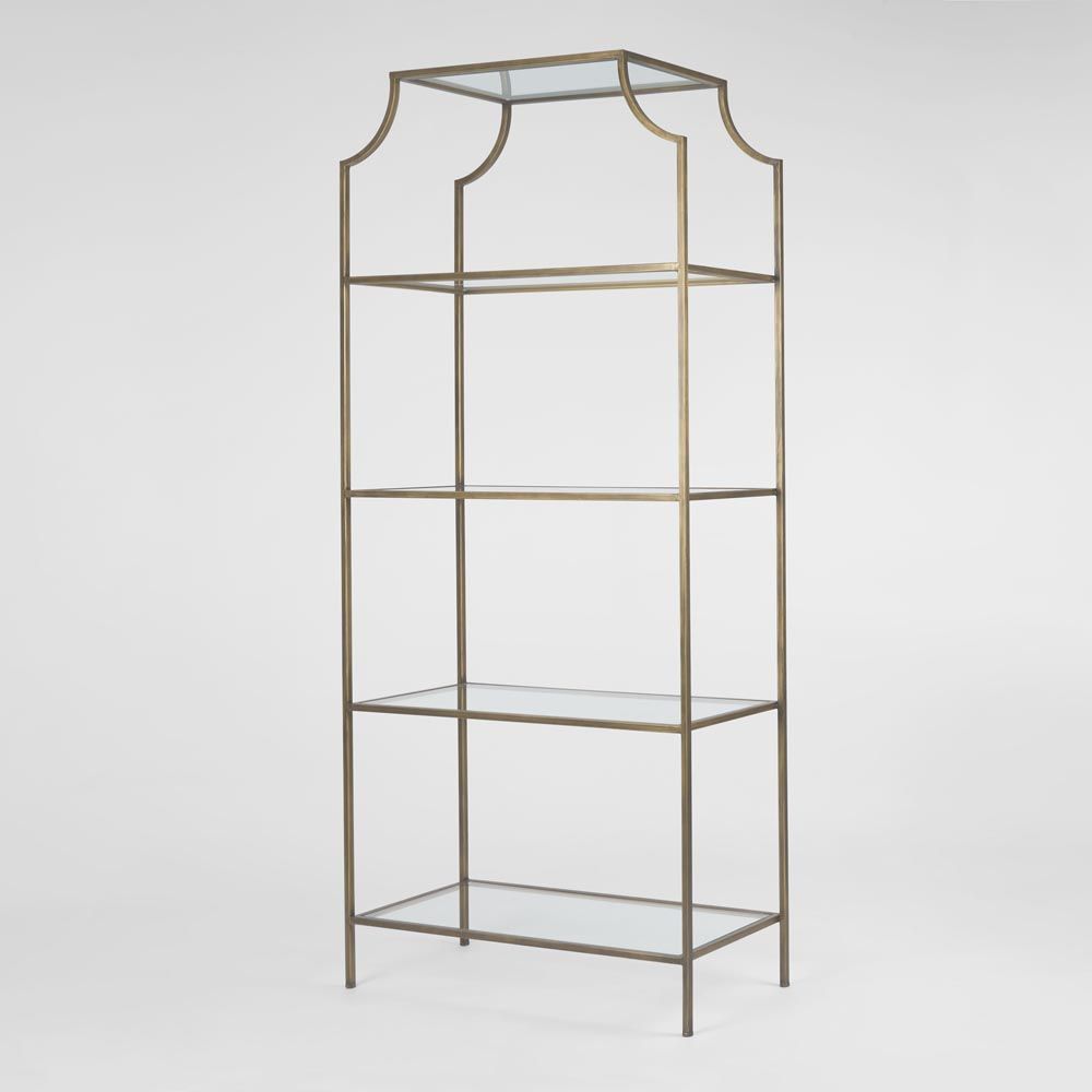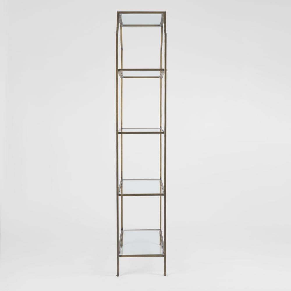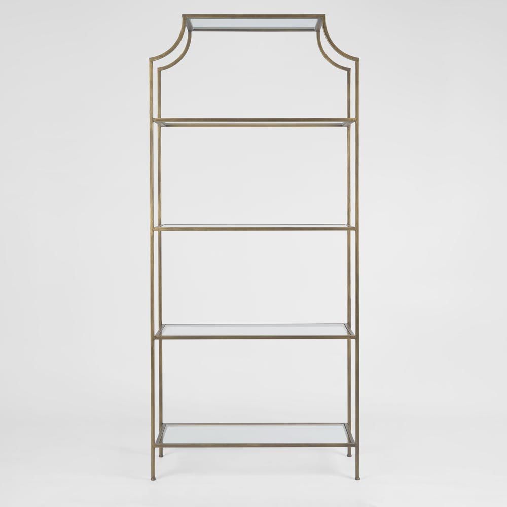 Our Palladium Brass Iron & Glass Shelves offer a stylish storage solution for any room. Finished in our popular warm brass iron this classic design with cut out corners top offers 5 layers of shelf space. Featuring tempered safety glass and a tether kit for securing/anchoring this unit to the wall this shelf will be a feature proudly displaying your books & homewares.
