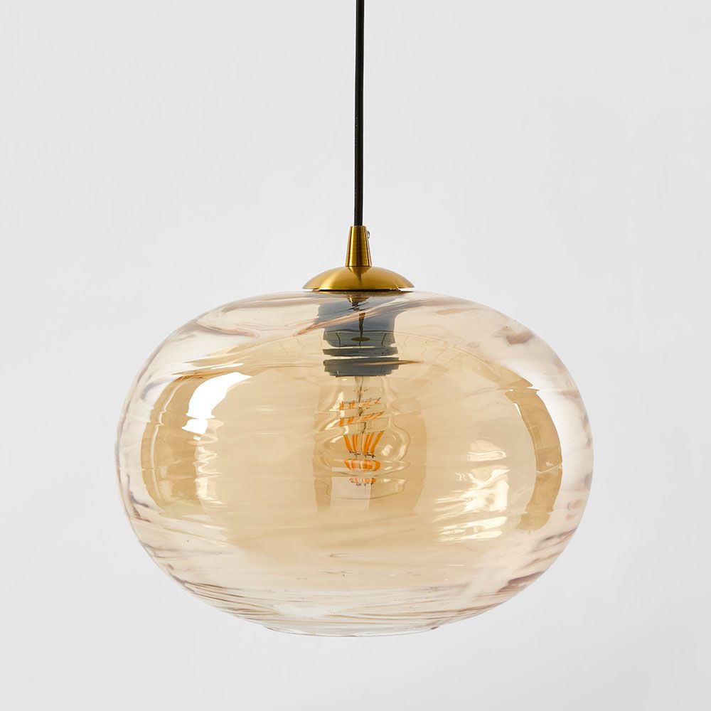 Hinza Ceiling Pendant Amber crafted from Glass, Metal, offering a natural, warm ambiance. This piece is ideal for cozy dining spaces or living rooms.
