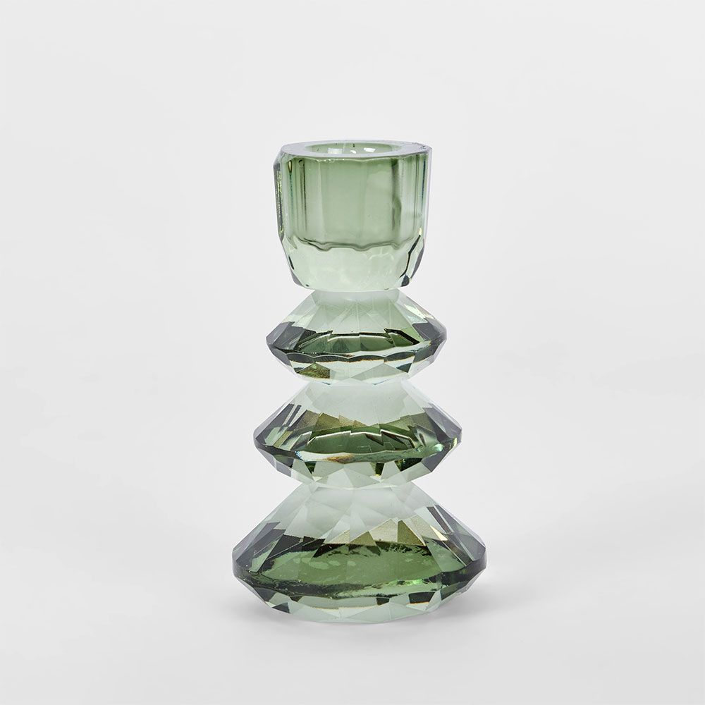 Lustre Glass Cut Candle Holder Green