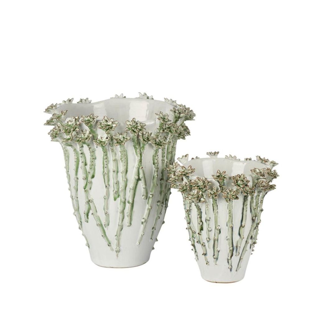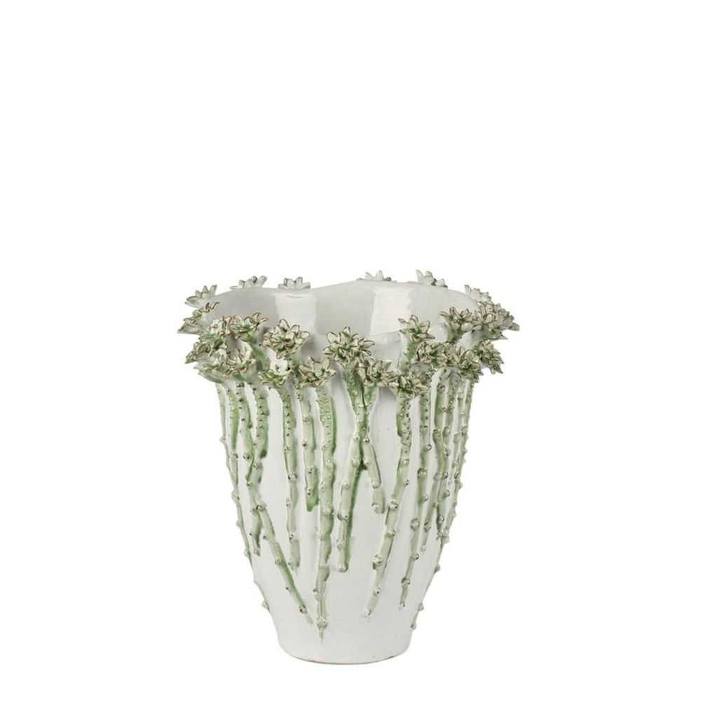 Inspired by corals and sea sponges this Moss Vase is textured and porous. Rough and raw this vase can we used as focal point for any room or fill with your favourite florals or trailing greenery for a dramatic centre piece. Finished in a variegating green to add depth and warmth.