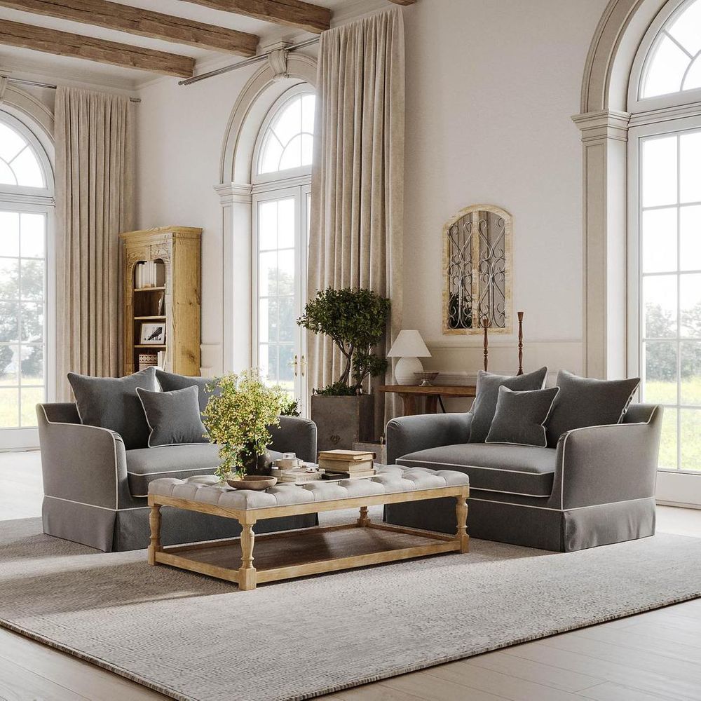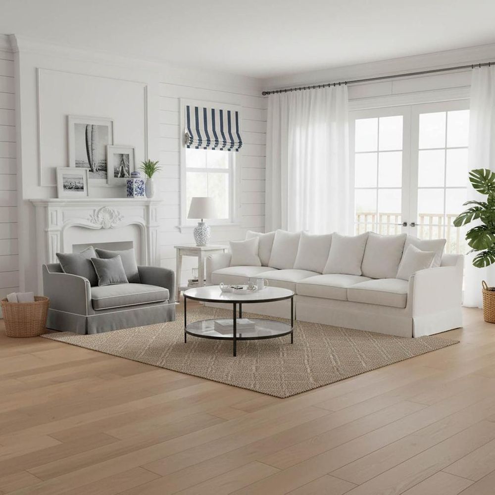 Noosa Hamptons 1.5 Seat Sofa Bed Grey W/White Piping
