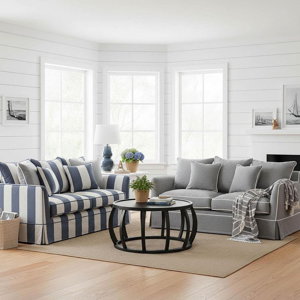 Noosa Hamptons 2.5 Seat Sofa Bed Grey W/White Piping