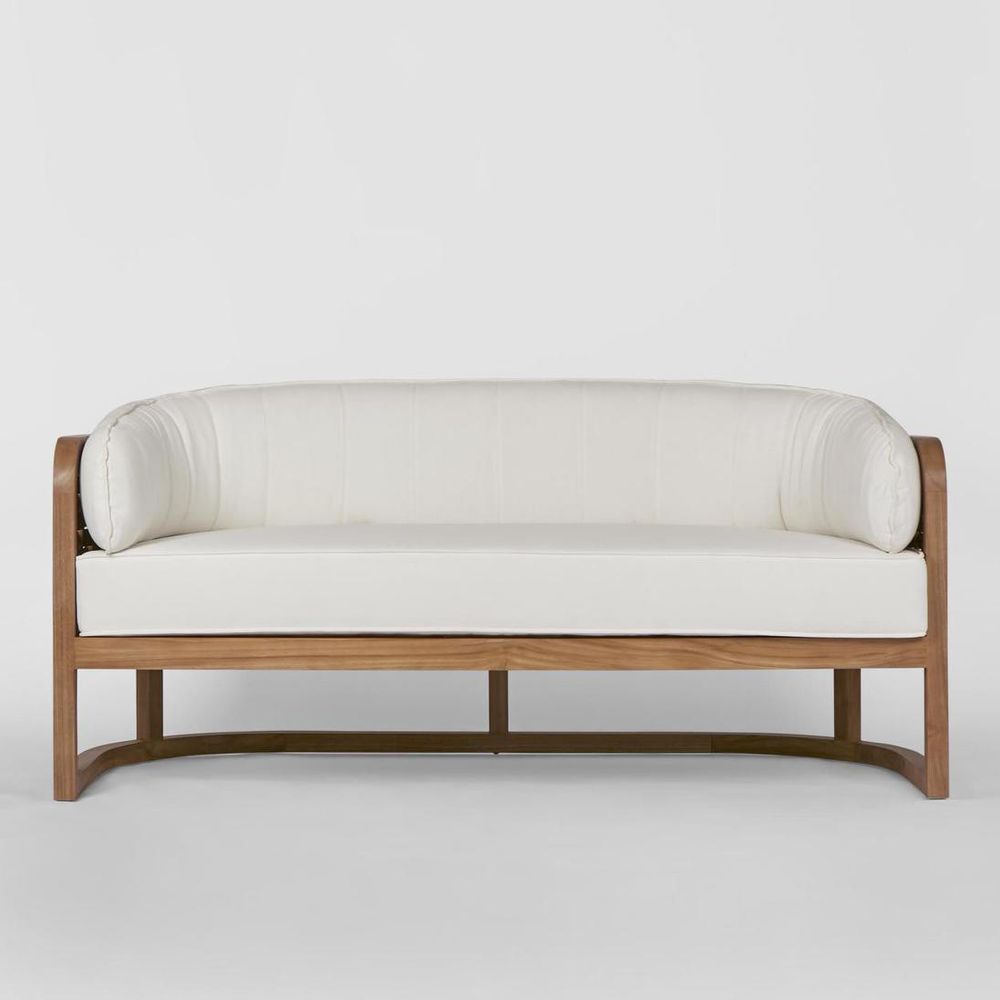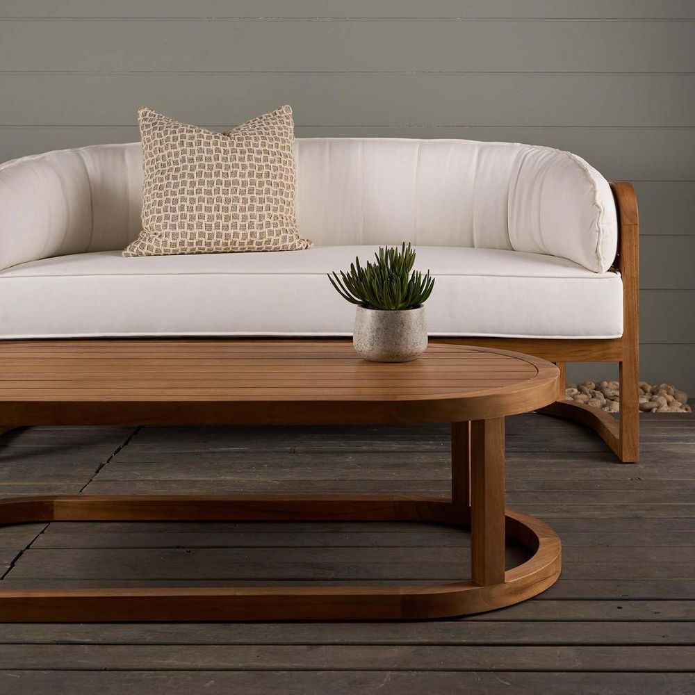 Introducing the Weave Indoor/Outdoor Teak Sofa, a masterpiece of craftsmanship that blends intricate design, premium materials, and versatile functionality. This sofa features handwoven wood detailing, a solid teak wood frame, and 100% outdoor fabric, making it a stylish and durable addition to any space. Key Features: Intricately Woven by Hand: The Weave Sofa showcases a beautiful, handwoven design that adds texture and visual interest. Solid Teak Wood Frame: Constructed from high-quality, solid teak wood, this sofa offers exceptional durability and stability. Teak wood is renowned for its natural resistance to weather and aging, making it an ideal choice for both indoor and outdoor use. 100% Outdoor Fabric: The sofa is upholstered with 100% outdoor fabric, designed to withstand the elements while providing comfort and style. The fabric is resistant to fading, moisture, and mildew, ensuring long-lasting beauty and functionality. Soft Curves: Designed with soft, flowing curves, the Weave Sofa offers a comfortable and inviting seating experience. The hugging cushion design supports relaxed seating, making it perfect for lounging and socializing. Versatile Use: Suitable for both indoor and outdoor settings, this sofa is perfect for patios, gardens, living rooms, and sunrooms. Its versatile design allows it to seamlessly transition between different environments, enhancing the aesthetic of any space. Durable Construction: The combination of handwoven craftsmanship, solid teak wood, and outdoor fabric ensures that this sofa is built to last. Its robust construction guarantees long-term use and enjoyment. Easy Maintenance: The Weave Sofa is designed for easy maintenance. The teak wood frame can be cleaned with mild soap and water, while the outdoor fabric can be spot-cleaned to keep it looking fresh and new. Eco-Friendly Material: Teak wood is a sustainable choice, as it is harvested from responsibly managed plantations. By choosing the Weave Sofa, you are supporting eco-friendly practices and sustainable forestry. Elevate your indoor or outdoor space with the Weave Indoor/Outdoor Teak Sofa, where intricate handwoven design meets durable craftsmanship. Enjoy a piece that combines beauty, comfort, and versatility, making it a perfect addition to any home. Cushions should not be left outside for extended periods or in the rain.Furniture left on damp ground or in pooled water will reduce the life of the frame.