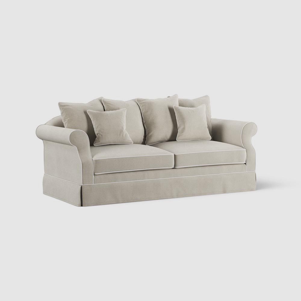 Expertly tailored Slip-cover with elegant piping detail & comfortable rolled arms offers the ultimate in classic style and comfort.
