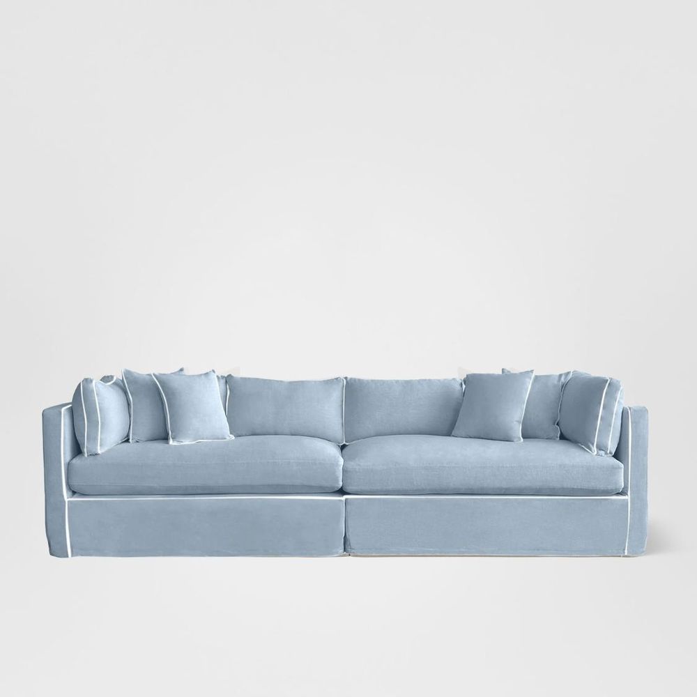 Expertly tailored Slip-cover with elegant piping detail defining the bold form.