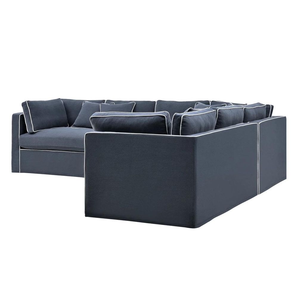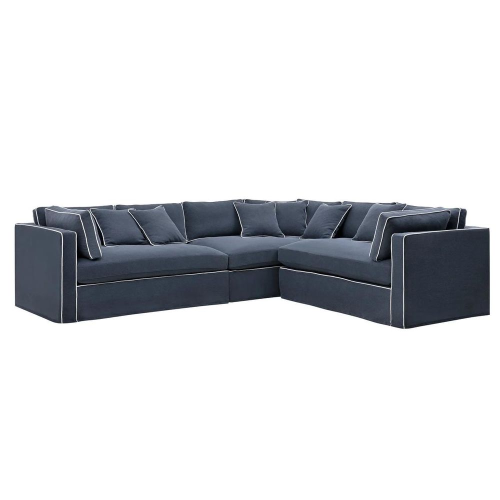 Marbella Modular Sofa Navy W/White Piping - Left Facing