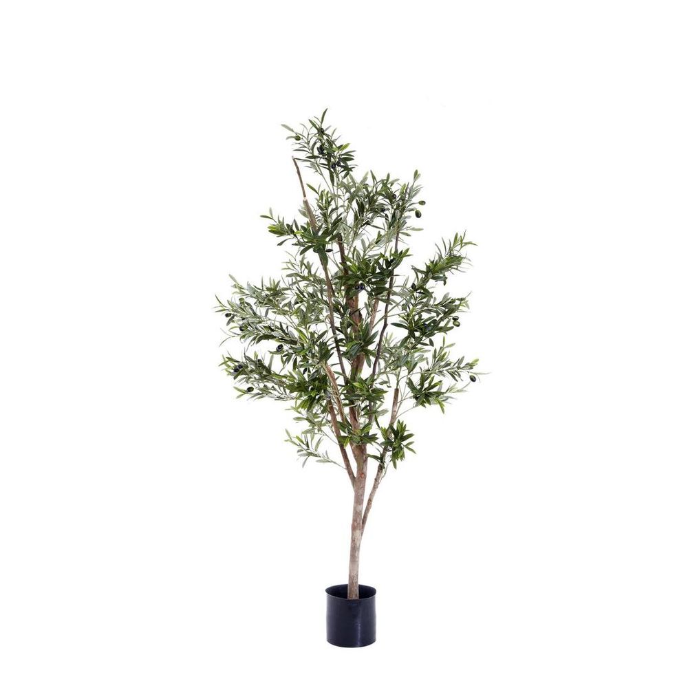 Bring the essence of Tuscany into your space with our faux Olive Tree. Whether gracing hotel lobbies, cozy cafes, or private retreats like home offices or courtyards, this tree effortlessly adds rustic charm. Supported by a sturdy trunk with textured bark, it boasts an abundance of green-silvery leaves and black olives. Embrace the soothing effects of biophilic design without the maintenance costs and hassle. With minimal assembly required, simply give it a gentle dusting to maintain its fresh and vibrant appearance.