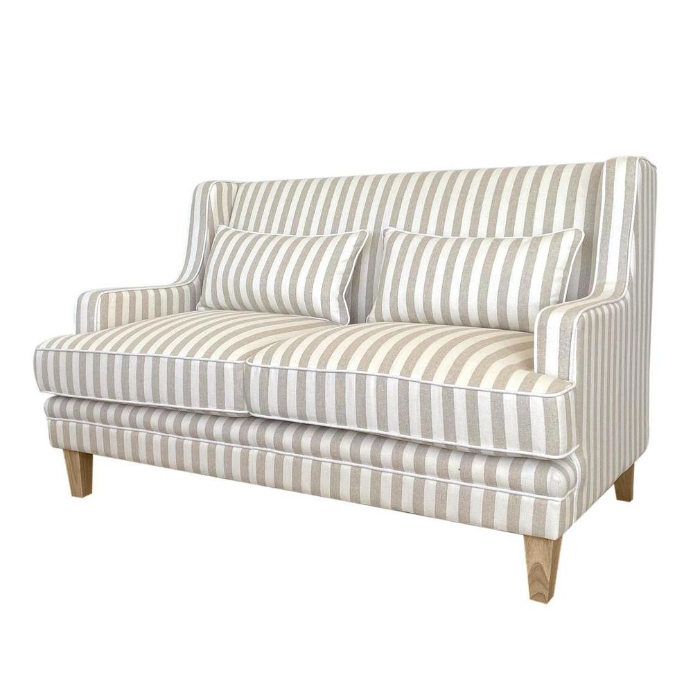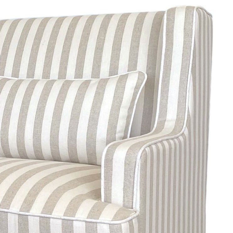 Bondi Hamptons 2 Seat Sofa Natural Stripe W/White Piping