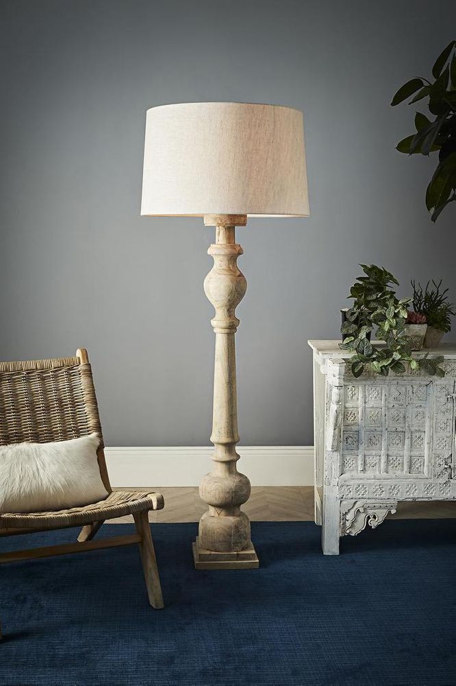 Rook Large - Natural - Turned Wood Pillar Floor Lamp