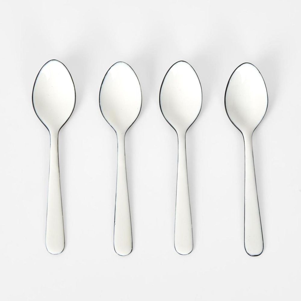 White Enamel Spoons Set of 4